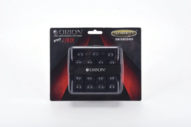 Perfect for audiophiles and professional installers looking for a reliable, high-capacity power distribution solution, the OWFHM30404 Wired Mini ANL Power Distribution Block stands out with its robust construction, aesthetic appeal, and exceptional functionality. It is an indispensable component for any high-performance car audio system, designed to meet the demands of both current and future audio technologies.