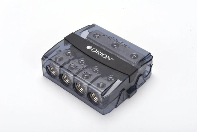 The OWFHM30404 Wired Mini ANL Power Distribution Block is an exemplary choice for car audio enthusiasts who require advanced power management solutions. This power distribution block is designed to handle complex audio systems, featuring three 0/2 gauge inputs and four 2/4 gauge outputs. This configuration allows for flexible and efficient distribution of power to multiple amplifiers, ensuring optimal performance and system stability.