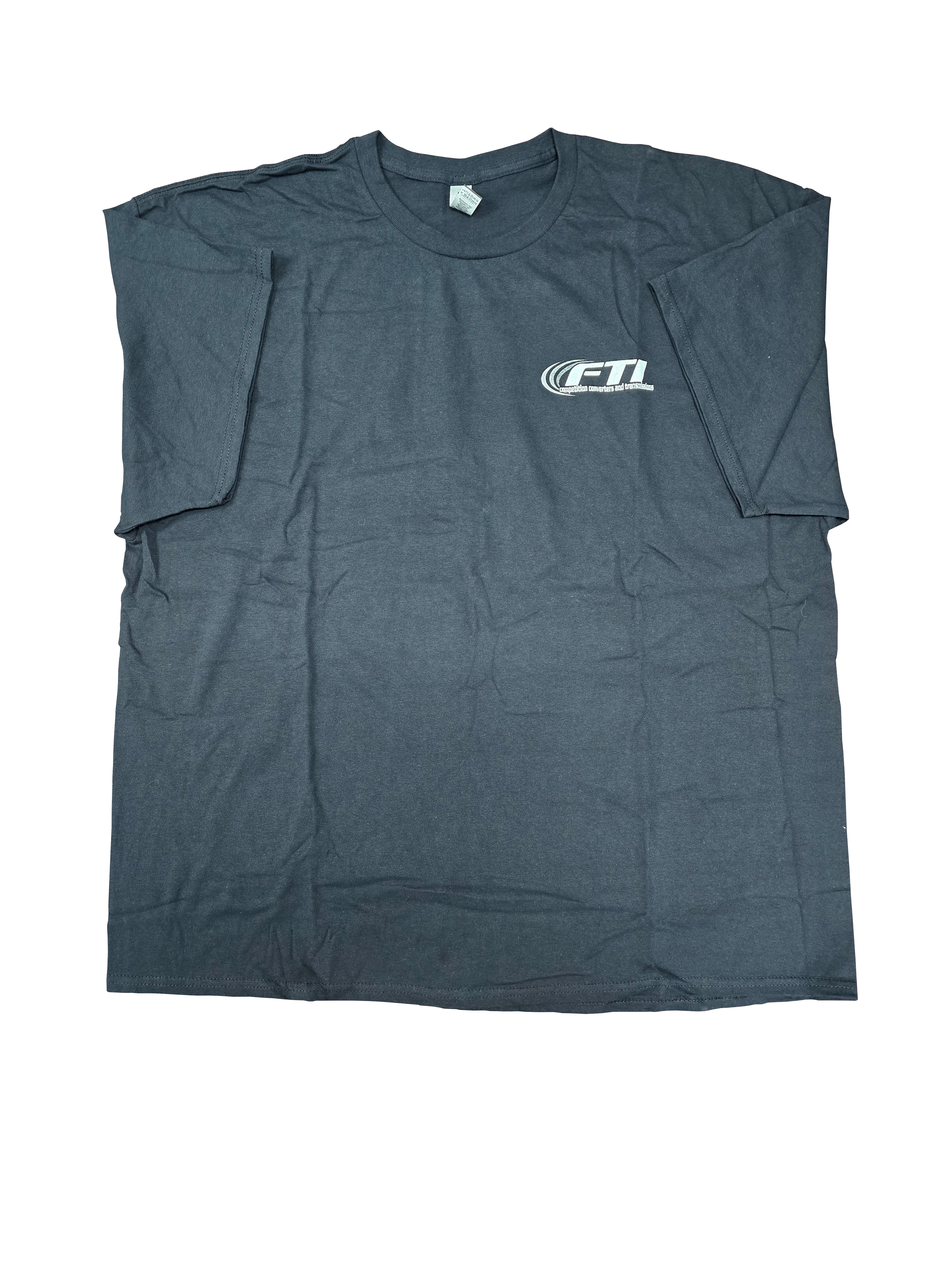Show your passion for performance with the official FTI Performance T-Shirt. Built for comfort and style, this black Gildan Heavy Cotton tee features the iconic FTI logo on the front left chest and a bold full-size FTI logo with a detailed torque converter graphic on the back—perfect for making a statement at the track, in the shop, or on the street.