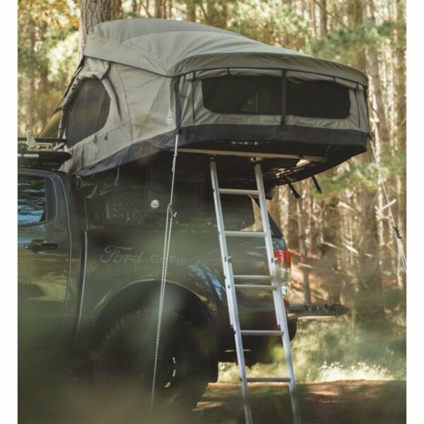 Soft Shell Rooftop easily setup and store in minutes. These tents are Waterproof, UV Protected and Wind Resistant. They feature High density Non-deforming foam mattress for a comfortable night ft. s sleep. Also includes a premium telescopic ladder and rainfly with Skyview Sunroof as well as covered ladder access. Tent sleeps 3-4 people.