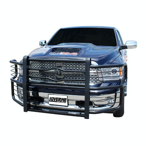 The LUVERNE Prowler Max grille guard equips your truck to tackle the toughest of jobs with its uncommon construction, comprehensive protection and arsenal of extra features. It features a one-piece construction, a punched steel screen, a built-in bottom step and our signature vehicle logo reveal. The Prowler Max™ is also available in two finish options and offers an easy, no-drill installation for each and every truck application. This package includes the grille guard only and requires mounting brackets for a complete installation (sold separately).