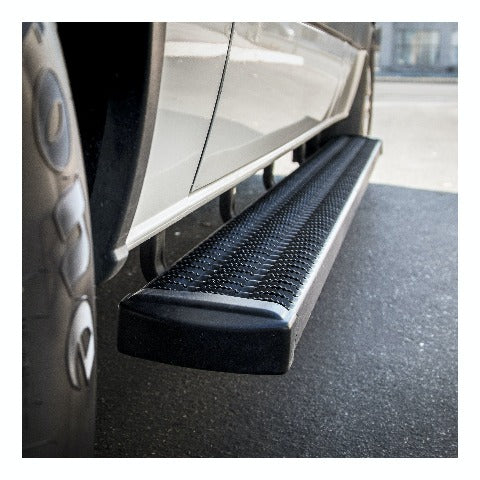 LUVERNE Grip Step 7" running boards for vans are the ideal work van accessories, adding safe, dependable footing to your cargo van with a vehicle-specific fit. Grip Step van steps are equipped with high-traction treads for fleet-approved safety, and they are made from powder-coated aluminum to be lightweight and provide long-lasting resistance to the elements. All Grip Step running boards are engineered for vehicle-specific installation. These van steps offer a custom fit for certain years and styles of the Ford Transit-150, Transit-250 and Transit-350 (see application info to verify fitment with your cargo van). They come with a shorter driver-side step and longer passenger-side step for the sliding door. They also come with powder-coated steel brackets and stainless steel hardware for a complete install. Grip Step running boards for vans are optimized for delivery trucks, construction vehicles and other commercial vans. They feature a 7" width, covered with expanded metal treads to grip the bottom of your boots for safe entry and exit every time. The metal treads are also highly resistant to wear, and they help keep the steps clean with their open, through-hole design. The aluminum construction of LUVERNE Grip Step running boards makes them strong for a rigid step, but lightweight for optimized fuel efficiency. Aluminum is also highly corrosion-resistant. To maximize corrosion resistance, Grip Step van steps are shielded in a textured black powder coat finish. This gives them an impervious layer of protection against the elements and resists chipping and UV damage. The black running boards also complement the look and style of your cargo van, adding a professional finishing touch. To complete the look, we also offer rear Grip Step van steps, providing safe, convenient access to the rear cargo area.