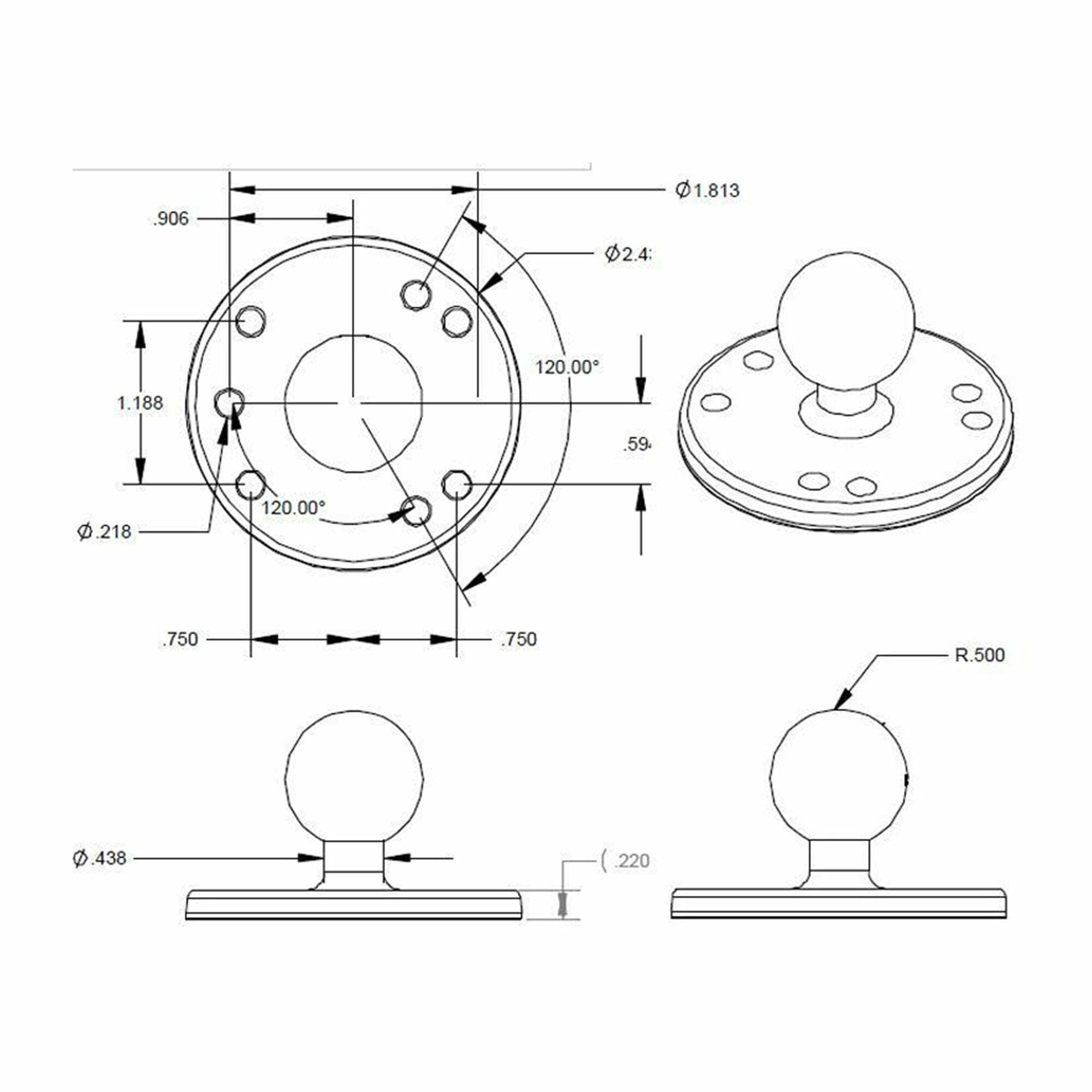 - 2.5" round plate connects to RAM® device holders containing the universal AMPS hole pattern