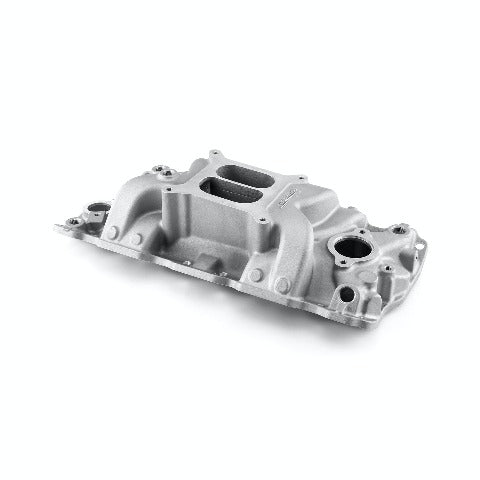 Chevy SBC 350 MidRise Aluminum Intake Manifold Satin
