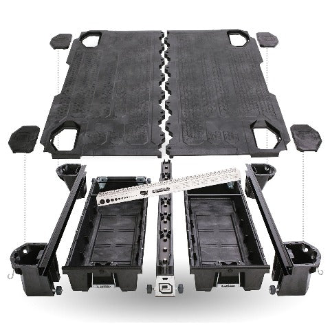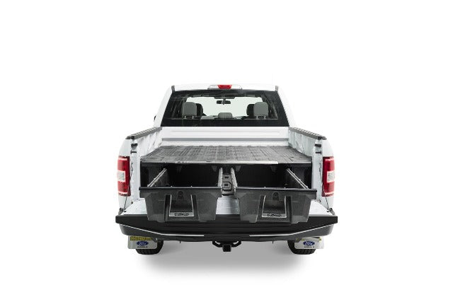 The DECKED in-vehicle storage system offers secure, weatherproof and organized storage with a sliding drawer toolbox system for pick up trucks. 100% American made, the DECKED system features two secure, full bed-length drawers capable of carrying 200lb each that glide effortlessly on industrial-grade wheels beneath a 2,000lb payload-rated deck. Constructed from rugged High Density Polyethylene (HDPE) and steel, owners get ergonomic access to tools and equipment while maintaining full use of the truck bed. DECKED systems are perfect for contractors, painters, carpenters, electricians, surveyors, plumbers, handyman services and the outdoor enthusiast who need their truck to have secure storage bins that are easy to access. The drawers slide out at waist height while still allowing the owner full use of their truck bed. The system, once assembled, is easily installed and removed. Accessories are available for customizable storage. This system is compatible with GMC Sierra & Chevrolet Silverado pick up trucks manufactured from 1997 to 2004 with a 6' 6 bed length.
