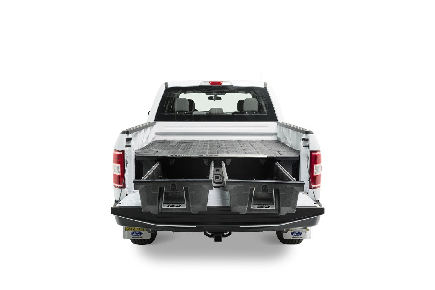 The DECKED in-vehicle storage system offers secure, weatherproof and organized storage with a sliding drawer toolbox system for pick up trucks. 100% American made, the DECKED system features two secure, full bed-length drawers capable of carrying 200lb each that glide effortlessly on industrial-grade wheels beneath a 2,000lb payload-rated deck. Constructed from rugged High Density Polyethylene (HDPE) and steel, owners get ergonomic access to tools and equipment while maintaining full use of the truck bed. DECKED systems are perfect for contractors, painters, carpenters, electricians, surveyors, plumbers, handyman services and the outdoor enthusiast who need their truck to have secure storage bins that are easy to access. The drawers slide out at waist height while still allowing the owner full use of their truck bed. The system, once assembled, is easily installed and removed. Accessories are available for customizable storage.