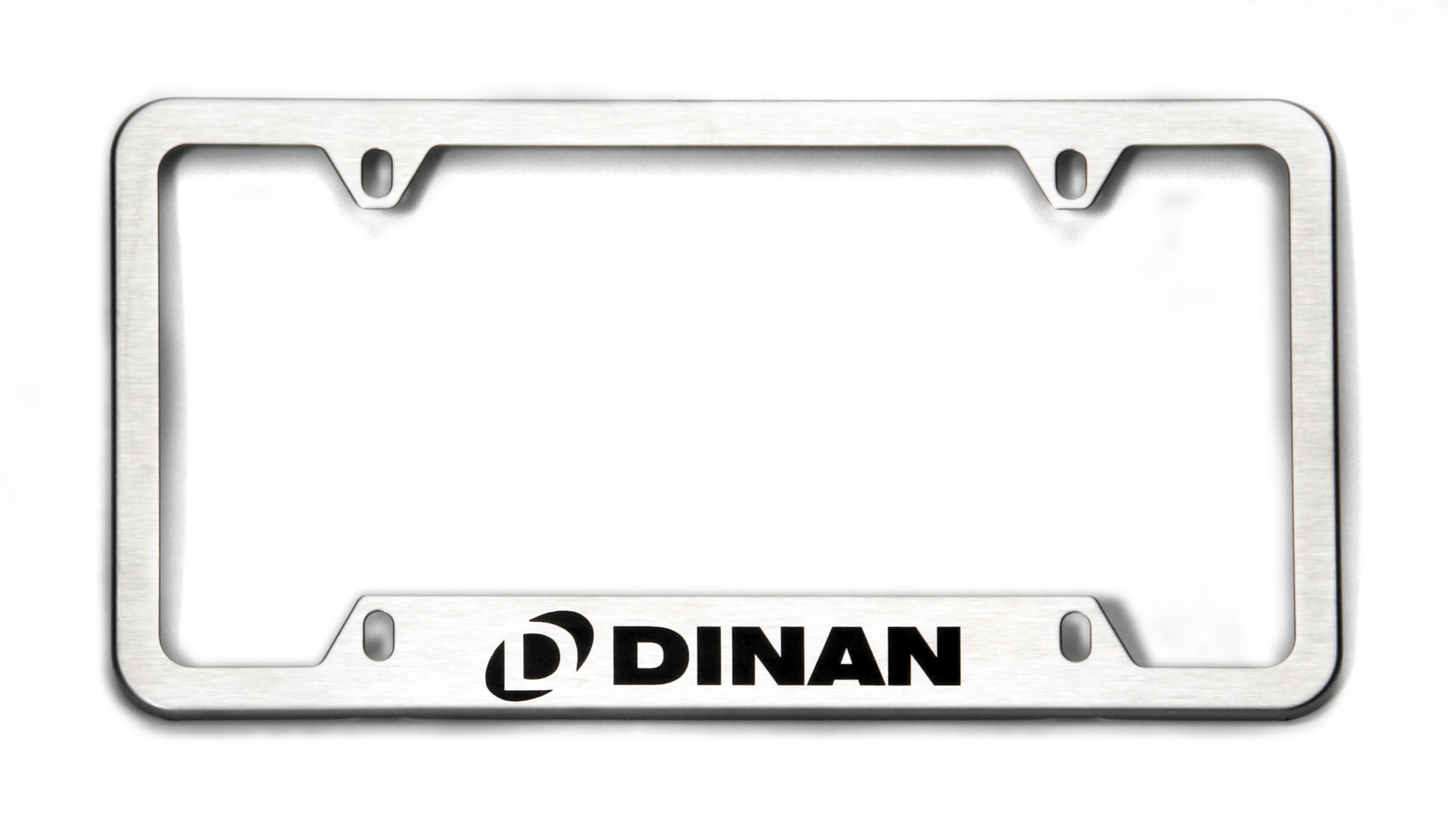 PLATE FRAME KIT; BRUSHED SS;Dinan License Plate Frame;Stainless Steel - Brushed Finish;High-quality stainless steel license plate frame with the Dinan logo.;Includes Patented Hardware Hider Caps;Universal Fit;Easy Installation