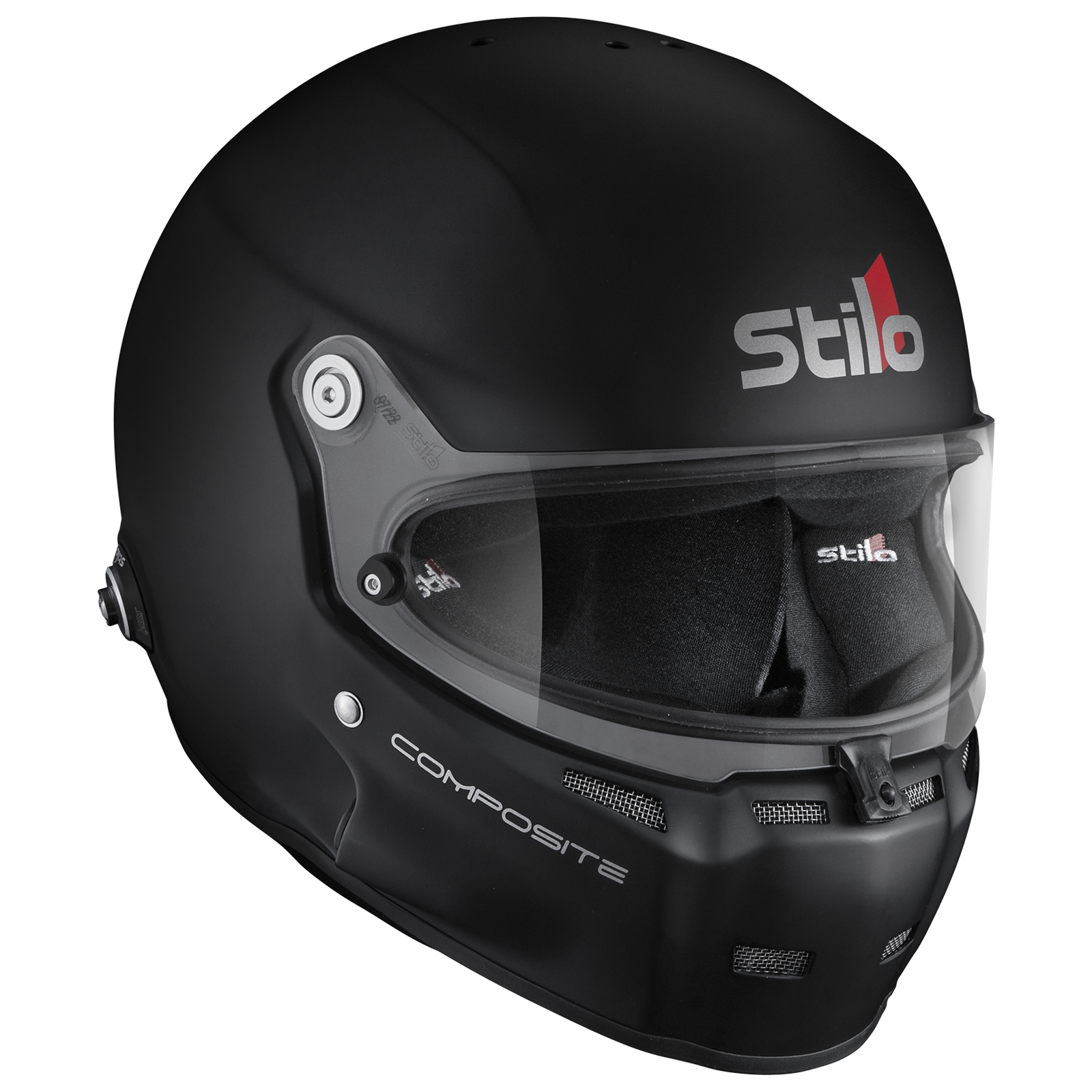 ST5 GT COMP LG/59 MATTE BLACK Most Stilo helmets can be built with a variety of options including communications and hydration. To custom configure your Stilo helmet, please call us directly at 1-800-654-7223. Stilo SA2020 ST5 GT Composite Racing Helmet 59 CM Large - Flat Black The Stilo ST5 GT Composite helmet is an iconic helmet used in a variety of race types. Crafted from a multi sandwich Fiberglass composite layup and exceeding the Snell SA2020/FIA 8859 ratings, this helmet features an array of improvements from the ST4 Helmet Line. Weighing in at 2.99lbs in the small shell size and 3.74lbs in the large shell coming in Flat Black this helmet not only looks good but will minimize neck and head strain. The ST5 GT helmet most notably includes side ports on either side of the helmet which allow drivers to customize their helmet with an array of accessories. These accessories include an array of electronic integrated communication systems, as well as drink & air systems. The ST5 also builds upon our ST4 design with a larger eye port which opens past the line of sight and includes an 3mm clear visor coming standard with our anti-fog coating. Improvements also have been made to the interior design with removable cheek & top pads allowing drivers to obtain the perfect fit. Helmets come standard with removable earmuff cushions which provide a significantly quieter environment for the driver by isolating the ear. Other Features: All Stilo closed faced helmets come in two separate shell sizes allowing us to craft a better fitting helmet that is lighter weight. Ready for integrated electronics, air supply, and hydration or any combination of the three this helmet is the most customizable helmet on the market, and all options integrate seamlessly with the ST5. M6 nuts are pre-installed for easy FHR installation *this helmet does not include post anchors* Additional accessories available such as aero, top air kits, and an array of visor options. Made in Italy and assembled by hand by skilled craftsmen
