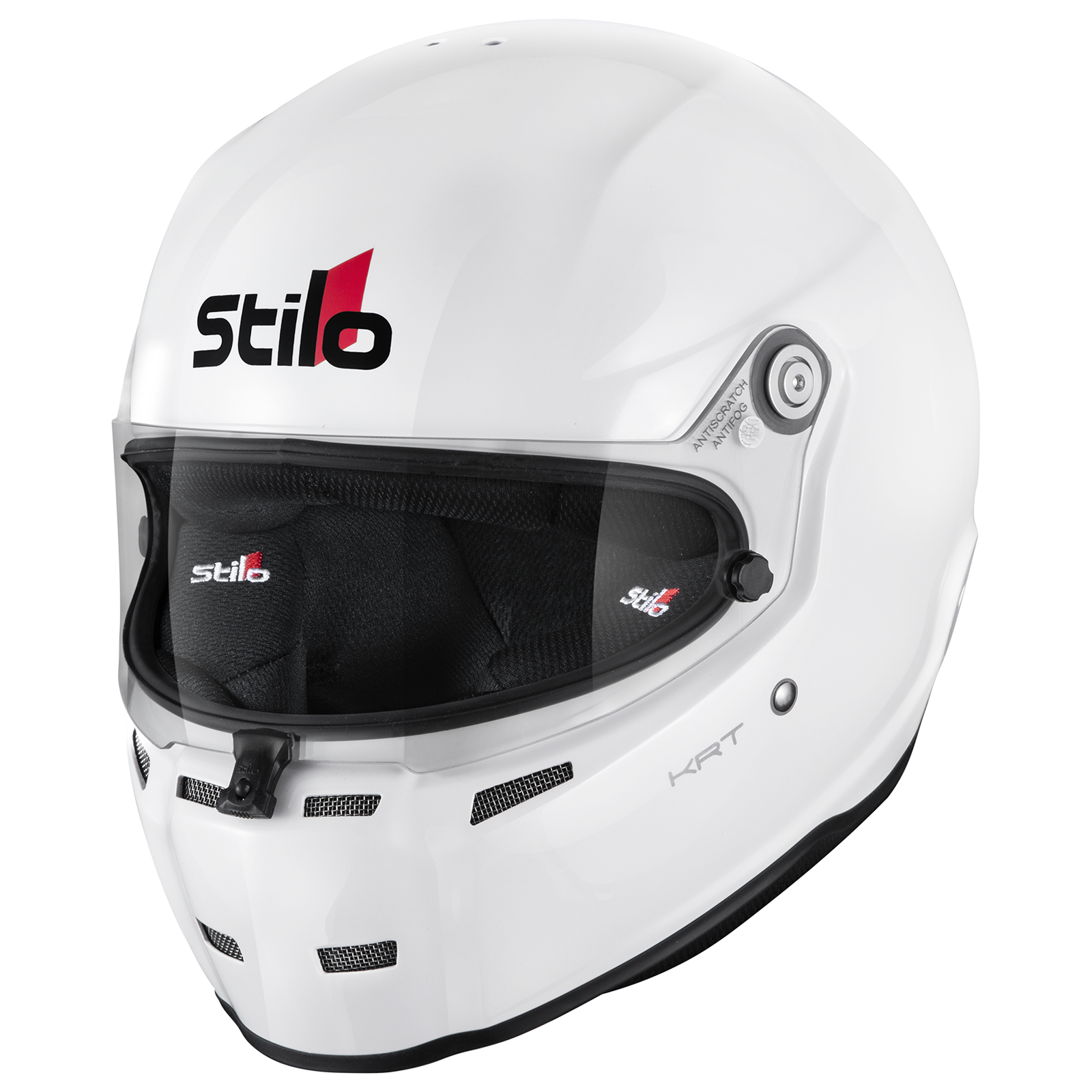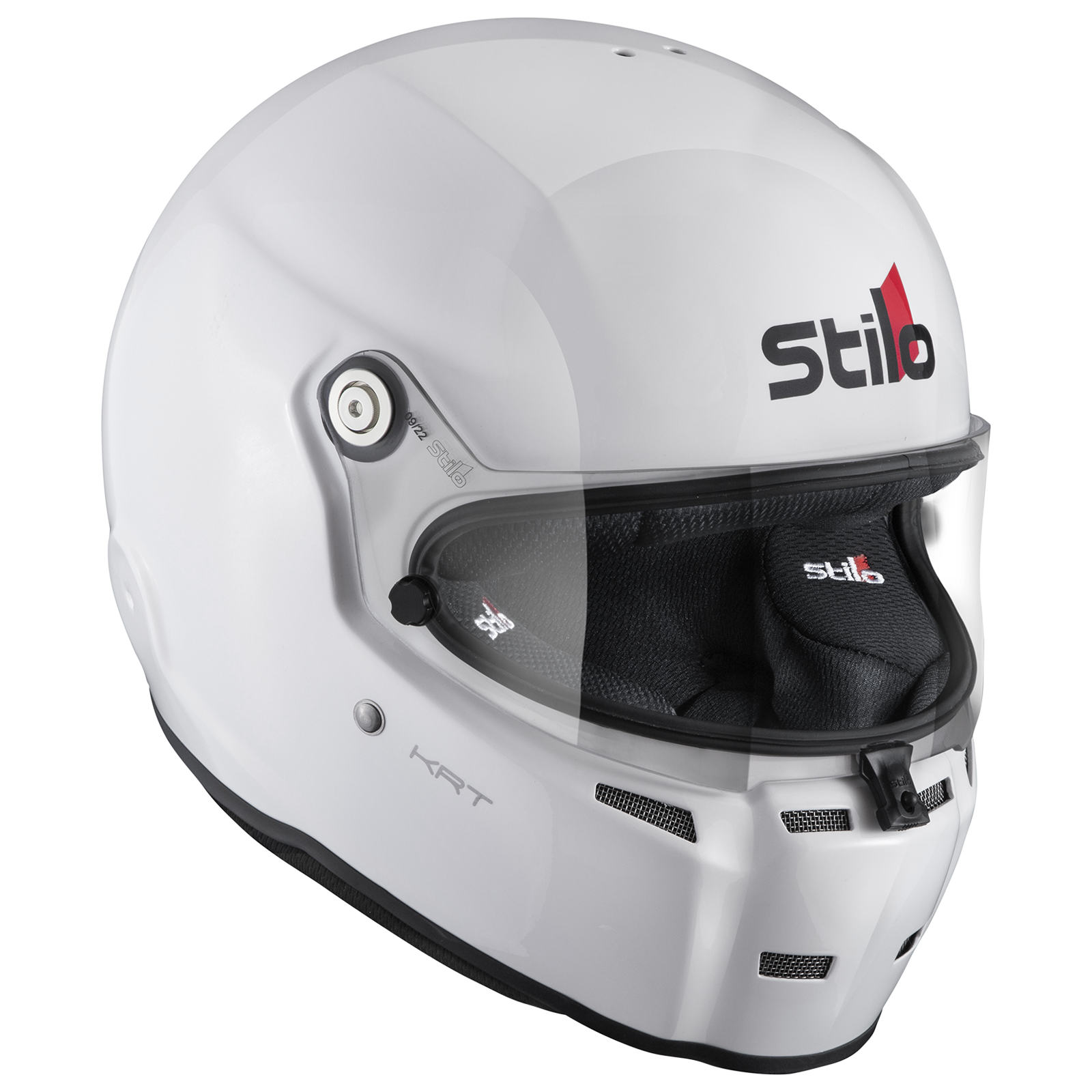 ST5 KRT20 HELMET MED/57 WHITE ST5 KRT Karting Helmet SK2020 57 CM Medium - White The Stilo ST5 KRT (Kart) Helmet turn heads with style that closely resembles the top of the range ST5 Zero helmet used by many professional racing athletes worldwide. The ST5 Kart is manufactured in a lightweight and very strong composite material and is currently available in white. As with every Stilo helmet, the focus is on safety, comfort and function. The ST5 Kart helmet's interior has an excellent fit and comfort level due to its dual density interior foam lining. From the first use, karters will truly appreciate the level of comfort it offers. The ST5 Kart's symmetrical visor offers excellent vision and an effortless central visor locking system that karters will appreciate. The centrally located locking system has dual opening positions allowing adjustment for the visor to be slightly open for extra airflow as preferred by some karters in damp conditions or left completely sealed, but more importantly in both of these positions the visor is locked and will never fly open. The Stilo ST5 Kart Helmet arrives with a 3mm thick FIA F1 standard visor - adding a dramatic improvement in safety. Offered in a large range of different finishes and tints, including colored iridium options that have been added for a totally bespoke finish. In addition, a double glazed option is available for racing in wet and cold conditions to prevent misting up. We offer a full range of spoilers for any aerodynamic adjustment that maybe needed, but also giving the helmet a great look. Sold Individually