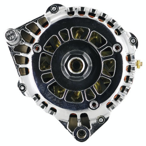 Alternator; Chrysler Upgrade; AD230; 165 Amp; 100 Idle; 2V Pulley; 1 Wire; Side Battery Post; Incl. 2 Spacers; Chrome;