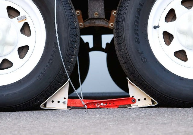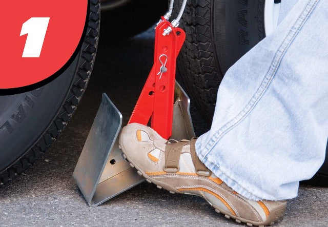 The Fastway ONEstep tandem axle wheel chock is the fastest and easiest way to chock your trailer.