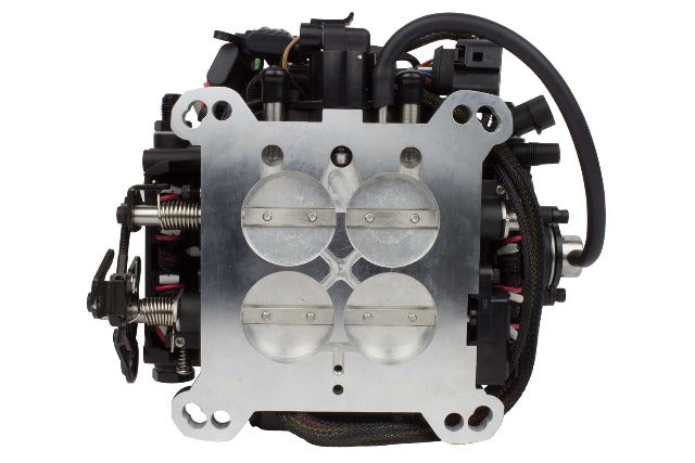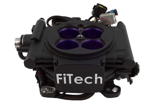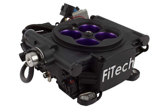 Never has so much power been placed in one compact package! The Meanstreet Series EFI System is a nitrous-compatible system with eight injectors, an onboard ECU, a MAP sensor, and an internal fuel-pressure regulator to deliver a simple, clean installation. The Meanstreet’s annular-swirl, wet-flow technology provides the most complete fuel atomization available. Using FiTech’s proprietary self-tuning technology, combined with easy tuning steps using the included handheld monitor, you’ll have your high-powered engine tuned and ready for the street or track. The matte black throttle body bolts to any 4-barrell intake and wiring is kept to an absolute minimum thanks to the built-in ECU.