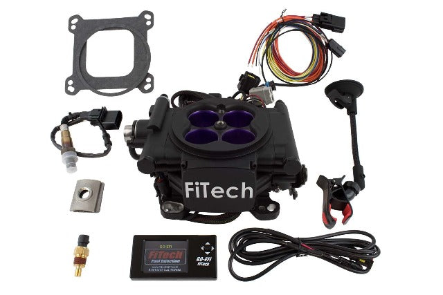 This Meanstreet EFI System Kit (Matte Black, 800 HP) has self-learning, an integrated ECU, (1) fan control, a handheld touch screen tuner, 250-600 HP, and (4) 80 lb injectors.