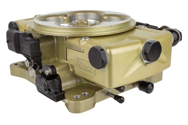 Fitech Fuel Injection introduces the all new Go EFI Classic 650HP System in the classic carburetor gold finish. Fitech EFI is now reverting back to the old school classic look while maintaining its innovative award winning patented design. This revolutionary fuel injection system allows you to maintain the classic carburetor look while eliminating cold start issues, hesitation, vapor lock and flooding. This innovative classic design hides the injectors and has an externally mounted ECU so it can be mounted wherever you want to ensure a true carburetor look is maintained. The Go EFI Classic is a self-tuning fuel injection system rated for up to 650hp. The more you drive the more it adapts to your personal style. So it is perfect for your everyday driver, your weekend Street Machine, or your Bracket Racer.