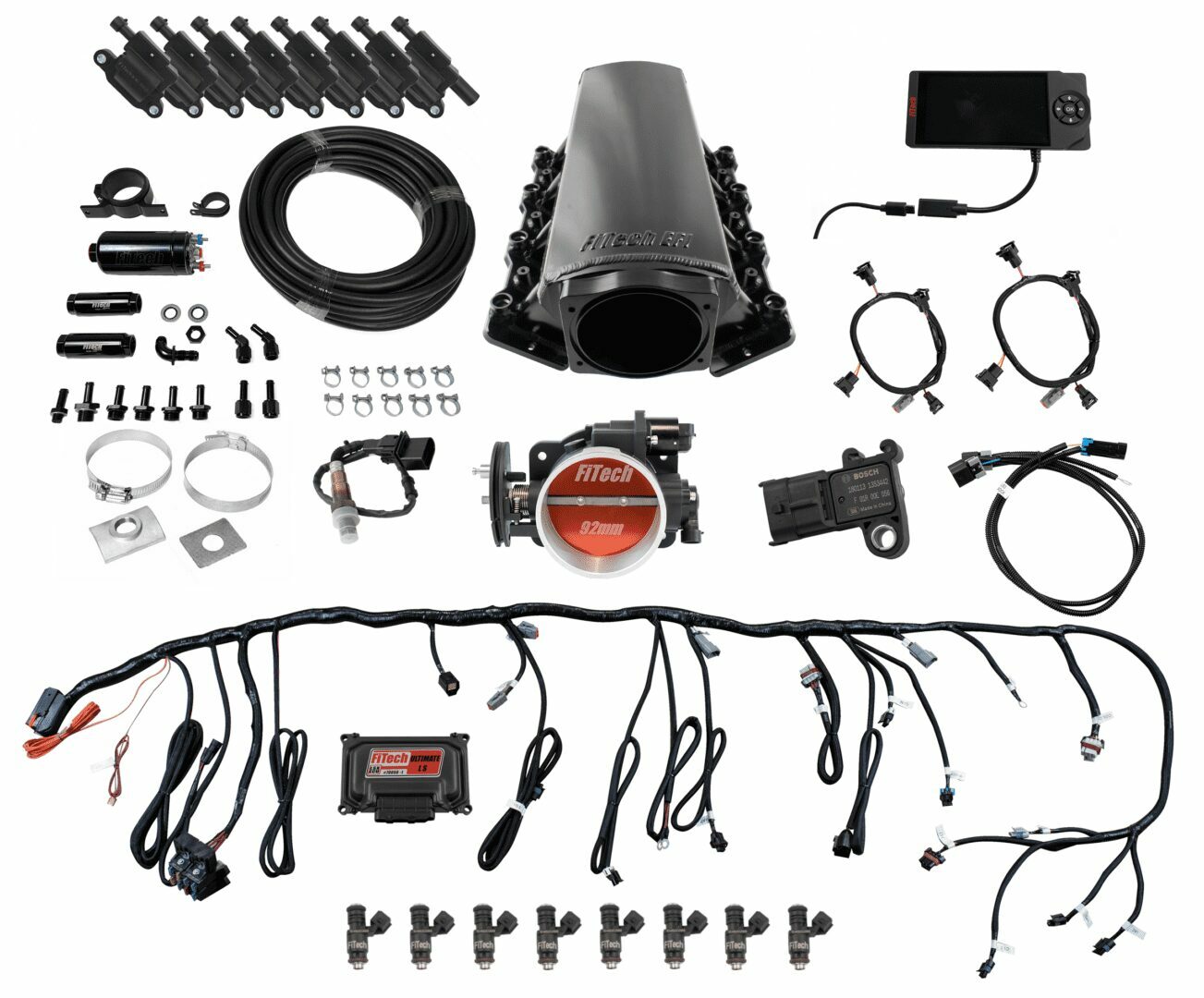 The Ultimate LS EFI System Kit is a complete self-tuning induction system for LS engines, designed for everyone from the do-it-yourself hot rodder to the professional EFI tuner! This system is ready to go with everything needed to complete the induction system of your LS engine and to get you on the road easier and faster than any system on the market today. Forget sourcing mismatched parts, cutting and splicing old harnesses, and re-flashed ECU’s from “Craigs List†tuners. FiTech’s Ultimate Series EFI is a complete kit suitable for a junkyard 5.3 to a stroker 427. It’s never been so simple to ditch that old factory hardware or to top off that fresh long block because FiTech has taken the work out of getting your new or pull-out LS up and running.