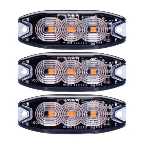 LED Amber Marker Light PRO Pack; 3.2 in. x 1.2 in.; Qty. 3; 3 LED; SAE Class 1; 19 Flash Patterns; Surface Mount;