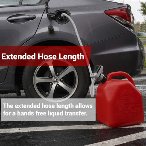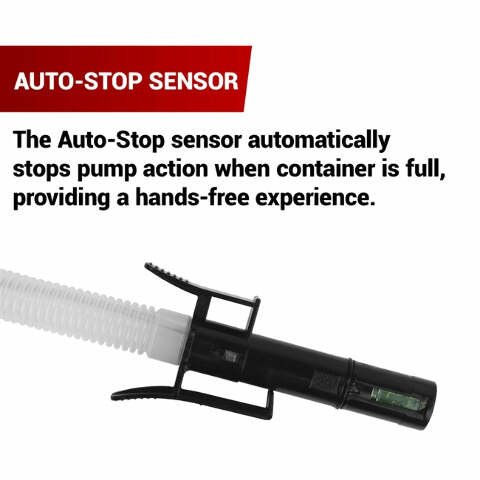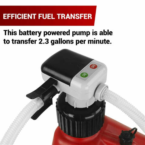 The TRFA01-XL-CH Chemical Resistant Transfer Pump has a flow rate of 2.3 GPM - Auto-stop overfill system, water-restistant buttons, intake tube length of 23" ,discharge hose 51". Compatible with VP Racing, Midwest Can, No-Spill Can & more.