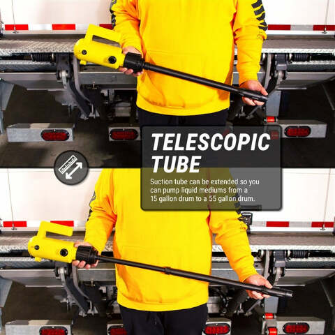 - Telescopic Suction Tube: length is adjustable up to 34 inches