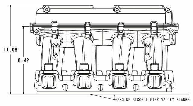 Hi-Ram Intake Manifold; Upper; EFI; w/Blank Configurable Top; Front/Rear Height 11.08 in.; Incl. Fuel Rails; RPM Power Band 1500-7000; Satin Finish;