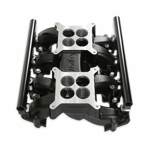 LS Dual Quad Intake Manifold; Upper; EFI; 2 x 4 Mid-Rise Dual Plane; w/Rectangular Port Cylinder Heads; RPM Power Band 1500-7000; Black Ceramic Finish;