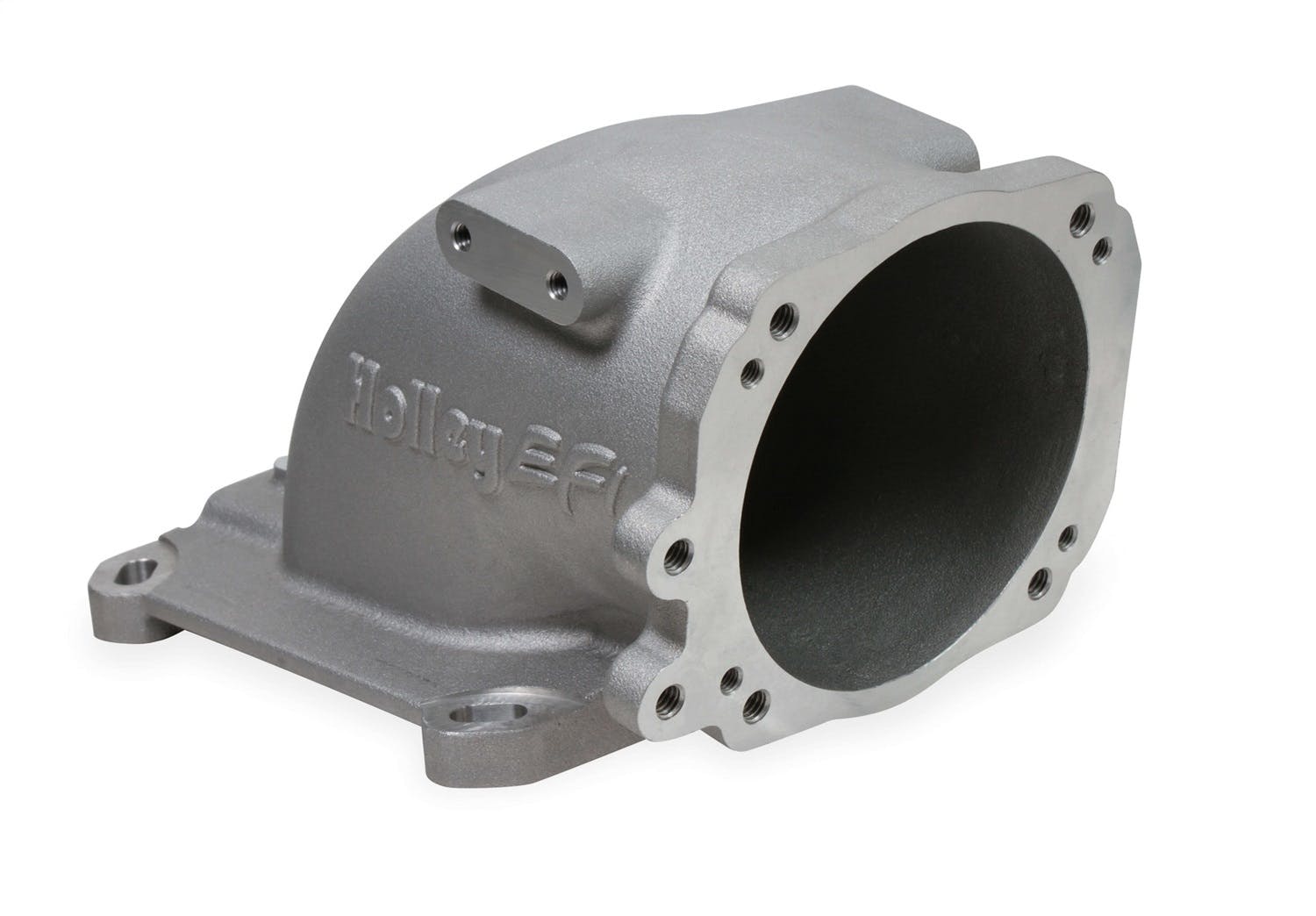 EFI Throttle Body Intake Elbow; Fits Intakes w/4150 Flange; 105mm Throttle Body Opening; 100 Degree Mounting Angle; Slotted Mounting Holes; Fits GM LS Throttle Body;