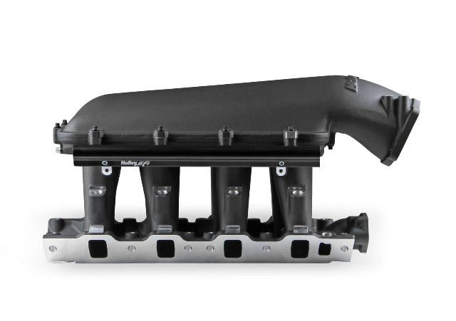 Holley EFI Hi-Ram Intake Manifold; Fits w/8.2 in. Deck SB Ford w/105 mm LS Throttle Body Flange Top; 1500-7000 RPM Power Band; Cast Aluminum; Satin Finish;