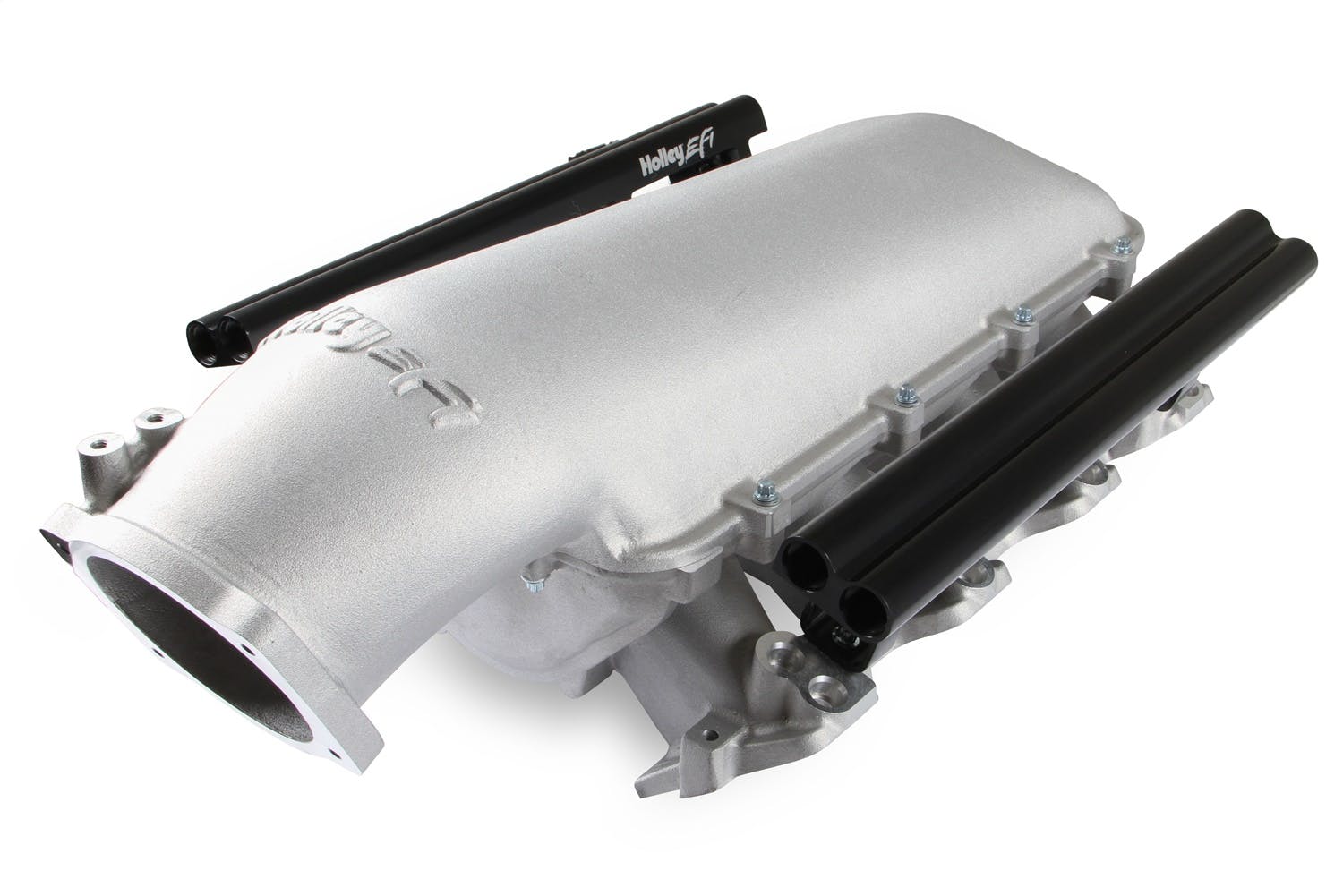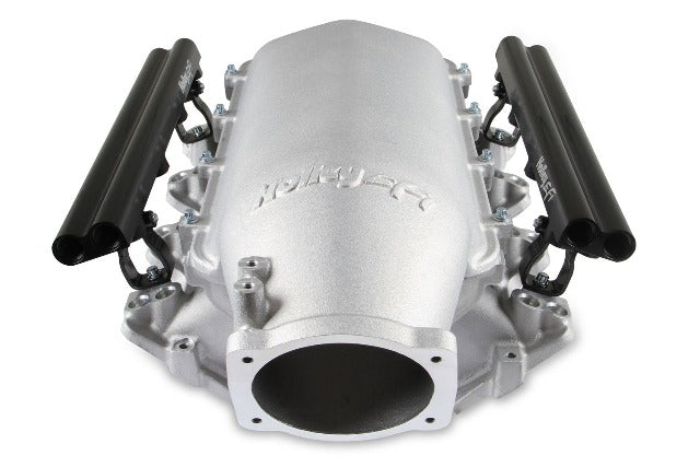 Holley EFI Lo-Ram Intake Manifold; Upper; Fits GM Engines w/LS1/2/6 Cathedral Ports Cylinder Heads; Top-Feed; Dual Fuel Injector; Satin Finish;