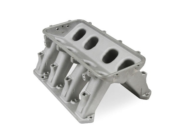 Add even more power to your Gen III Hemi engine with a Holley Hi-Ram intake manifold. This cast intake manifold has large intake ports - fits 2009-up 5.7L, 2005-2010 6.1L & 2011-up 6.4L engines. The Holley Hi-Ram intake manifold is for high-performance applications where induction system height is not limited. Using this Hi-Ram intake with high flowing Gen III Hemi cylinder heads has outstanding potential for naturally aspirated & forced induction applications. Aggressive, bold, race-bred styling will make bad intentions clear for drag race, muscle car, marine, off-road, sandrails, pulling trucks, track, street-rod applications and more! The base is designed to be modular in configuration to accept a wide range of EFI tops and to be attractive to builders and fabricators as the foundation for custom induction systems. Runner length and the tapered cross-section designed to perform well for a wide range of engine configurations. The EFI fuel rails are machined for -8AN O-ring fittings with passages large enough to accommodate high fuel flow and dampen pressure pulsations in the fuel system and come standard with EFI Hi-Ram kits. Intended for use on naturally aspirated, forced induction, or nitrous engines in the 5.7 to 7.2+ liter range, max power at 7500-8500 RPM.