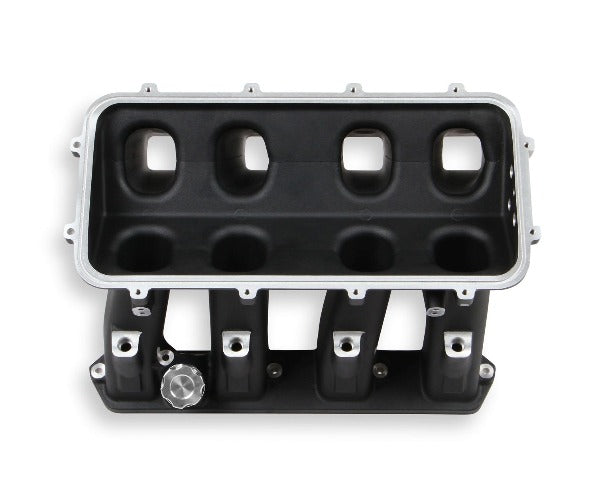Holley EFI Hi-Ram Intake Manifold; Lower; Gen III Hemi Base; Black Finish; Aluminum; 7.69 in. Front/Rear Height;1.7 in. X 1.88 in. Port; 1500-7000 RPM Power Band;