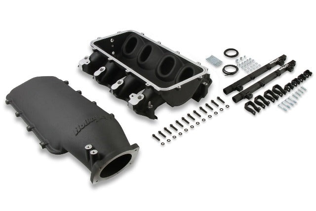Holley EFI Lo-Ram Intake Manifold Kit; Upper; LS3; Single Injector Top Feed; Black Finish; 9.25 in. w/o Intercooler;