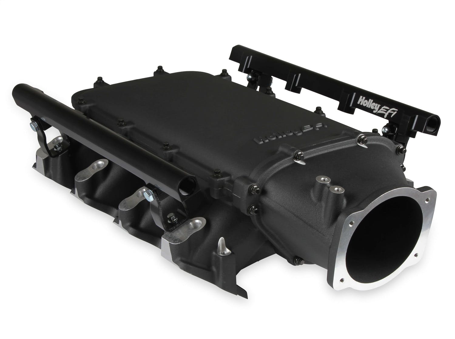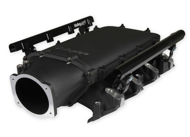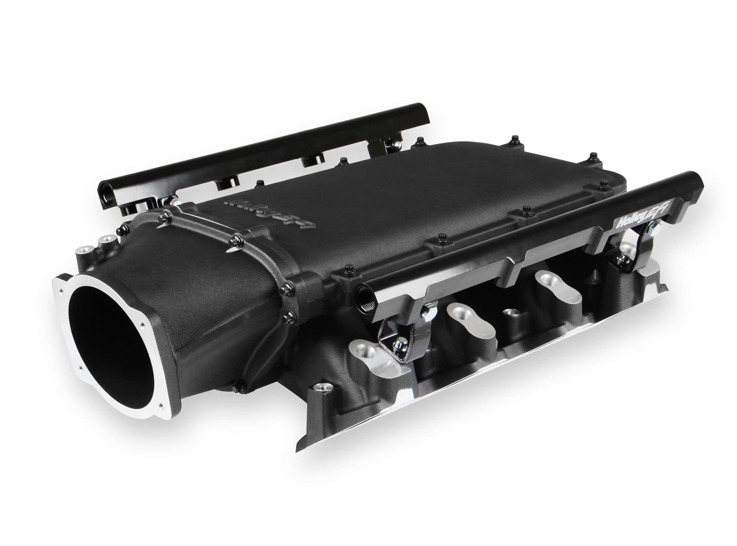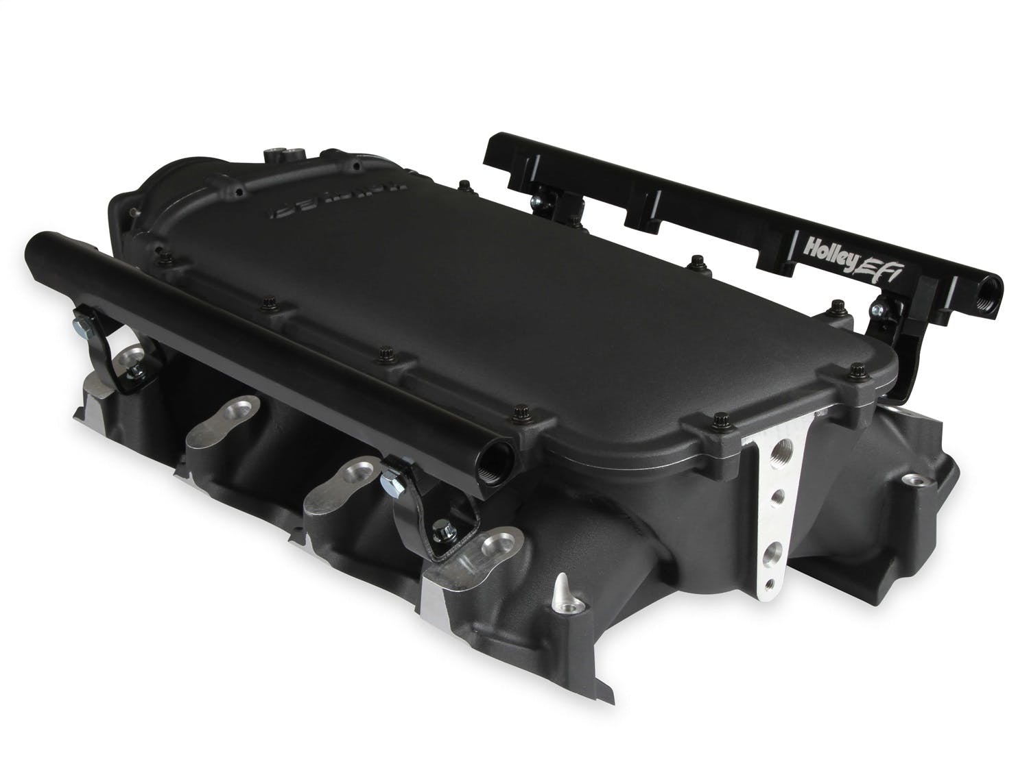 Holley EFI Ultra Lo-Ram Intake Manifold Kit; Upper; LS3; Single Injector Front Feed; Black Finish; 6.86 in. Height W/Throttle Body Adapter;