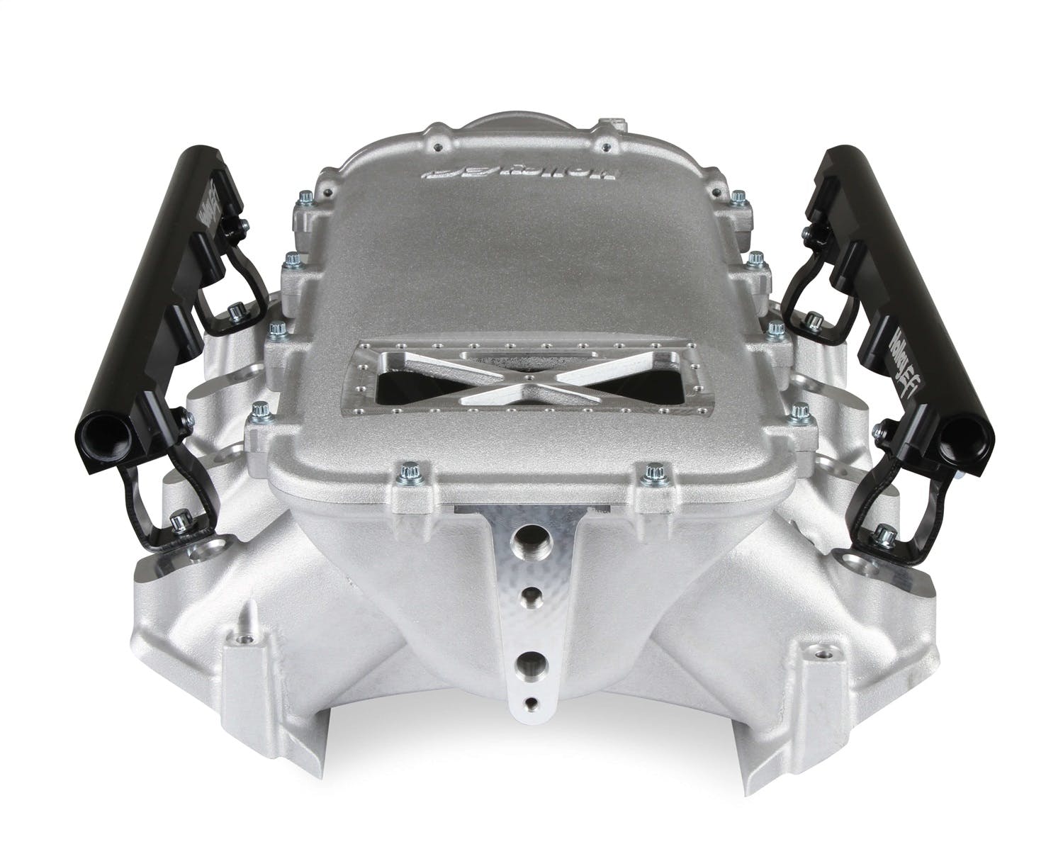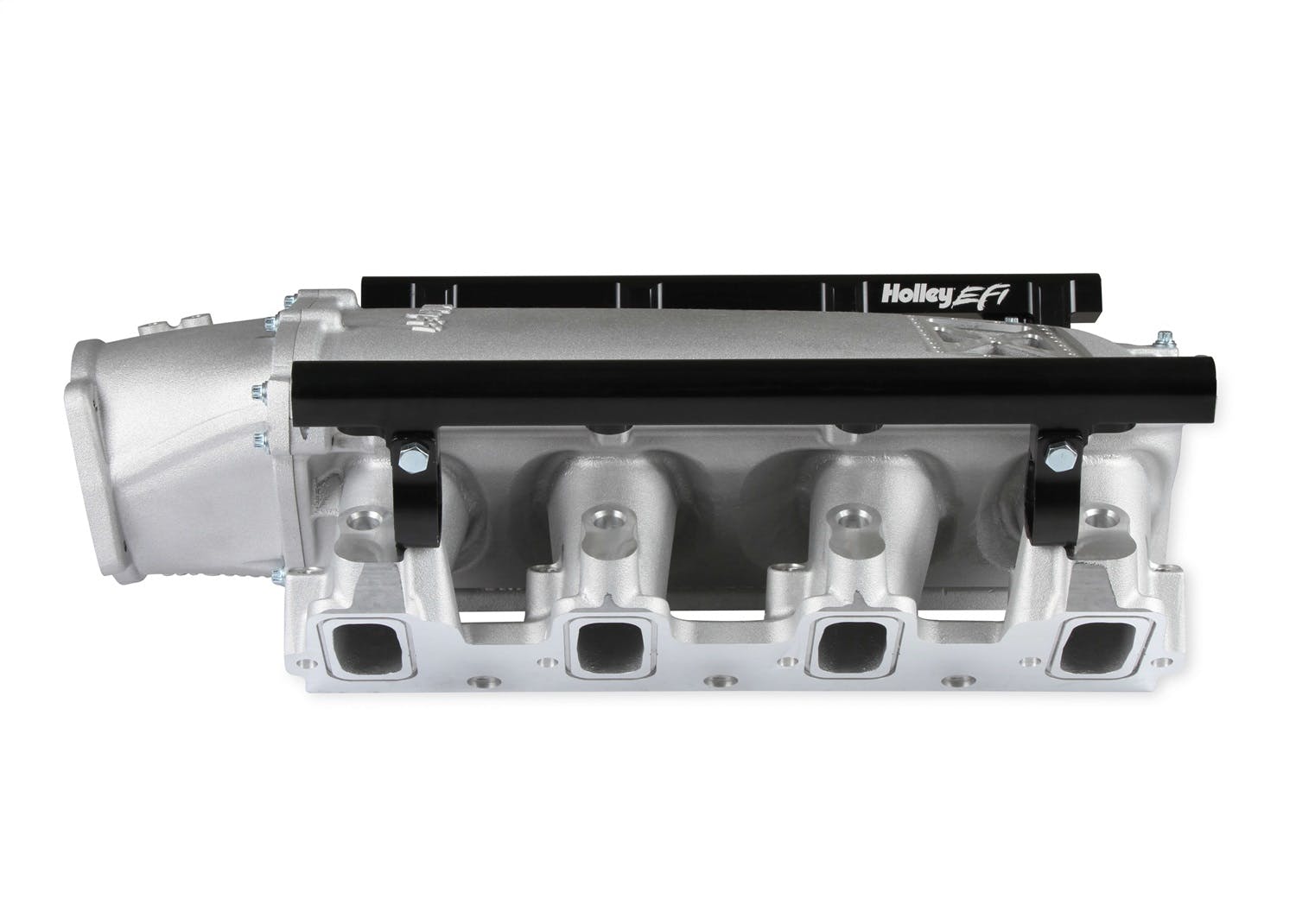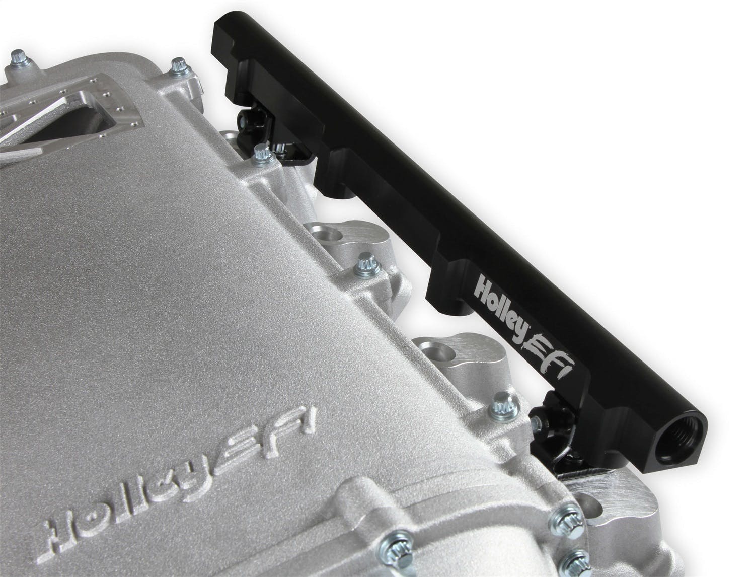 Available with single or dual injector provisions and a burst panel flange, the LS3 Ultra Lo-Ram intake manifold is designed for boosted combinations with hood clearance in mind. The Holley LS3 Ultra Lo-Ram intake manifold kits are designed for GM LS Gen III and IV engines equipped with GM LS3/L92 cylinder heads. These intake manifolds will work with OE or aftermarket cylinder heads. The Lo-Ram intake manifolds are designed for forced induction (supercharged or turbocharged) engine applications with peak power at 7000-8000 rpm depending on the application. The front entry plenum flange has a 105 mm opening to work with throttle body part number 112-581 or similar models. The base intake manifold is designed with a lower overall height to fit under a stock or mildly modified hood. The LS3 Ultra Lo-Ram is constructed to provide a very low profile modular intake manifold suitable for fabrication of special throttle body adapters or inlet ducts for custom installations. Available with single or dual injector provisions and a burst panel flange options.The fuel rail kits come with two sets of brackets. A set for long (usually standard length) fuel injectors and a set for short (such as Pico, or LS7) fuel injectors.