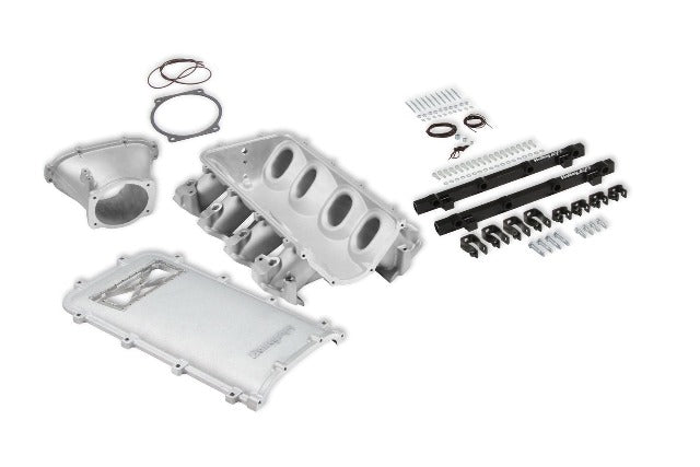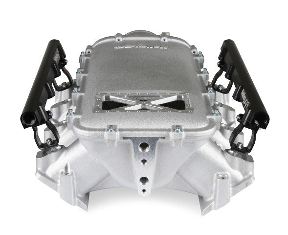 Holley EFI Ultra Lo-Ram Intake Manifold Kit; Upper; LS3; Single Injector Front Feed; w/Burst Silver Cast Satin Finish; 6.86 in. Height W/Throttle Body Adapter;