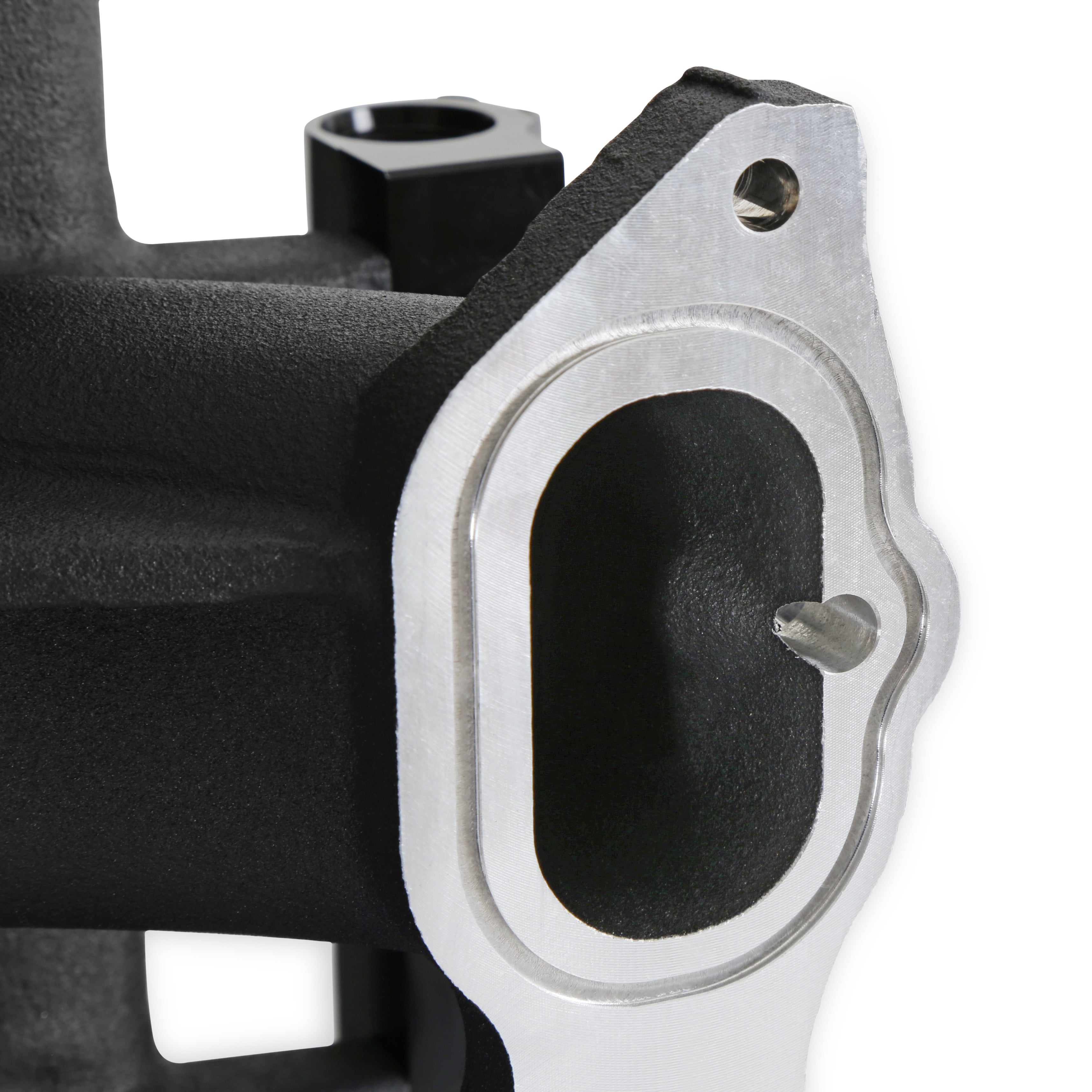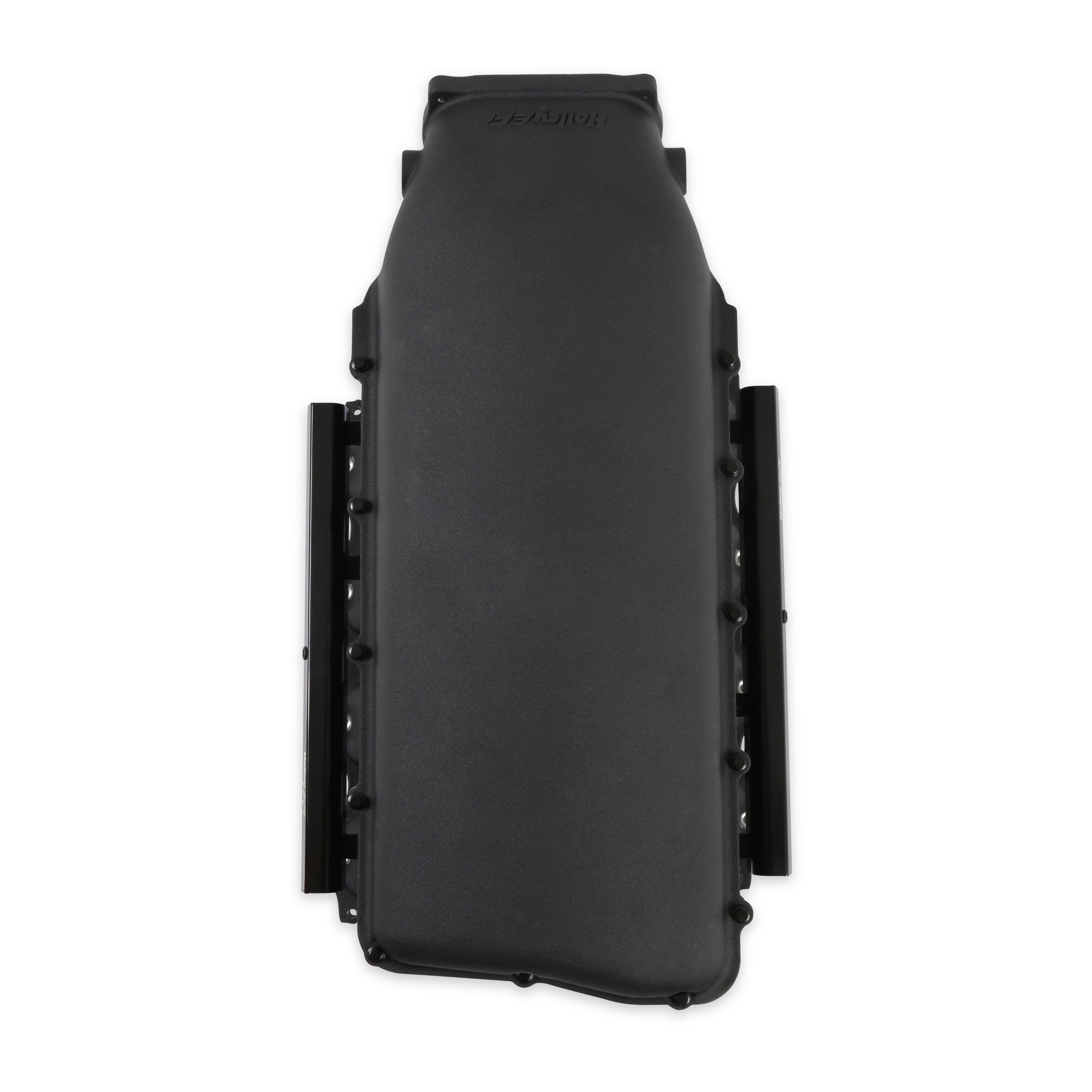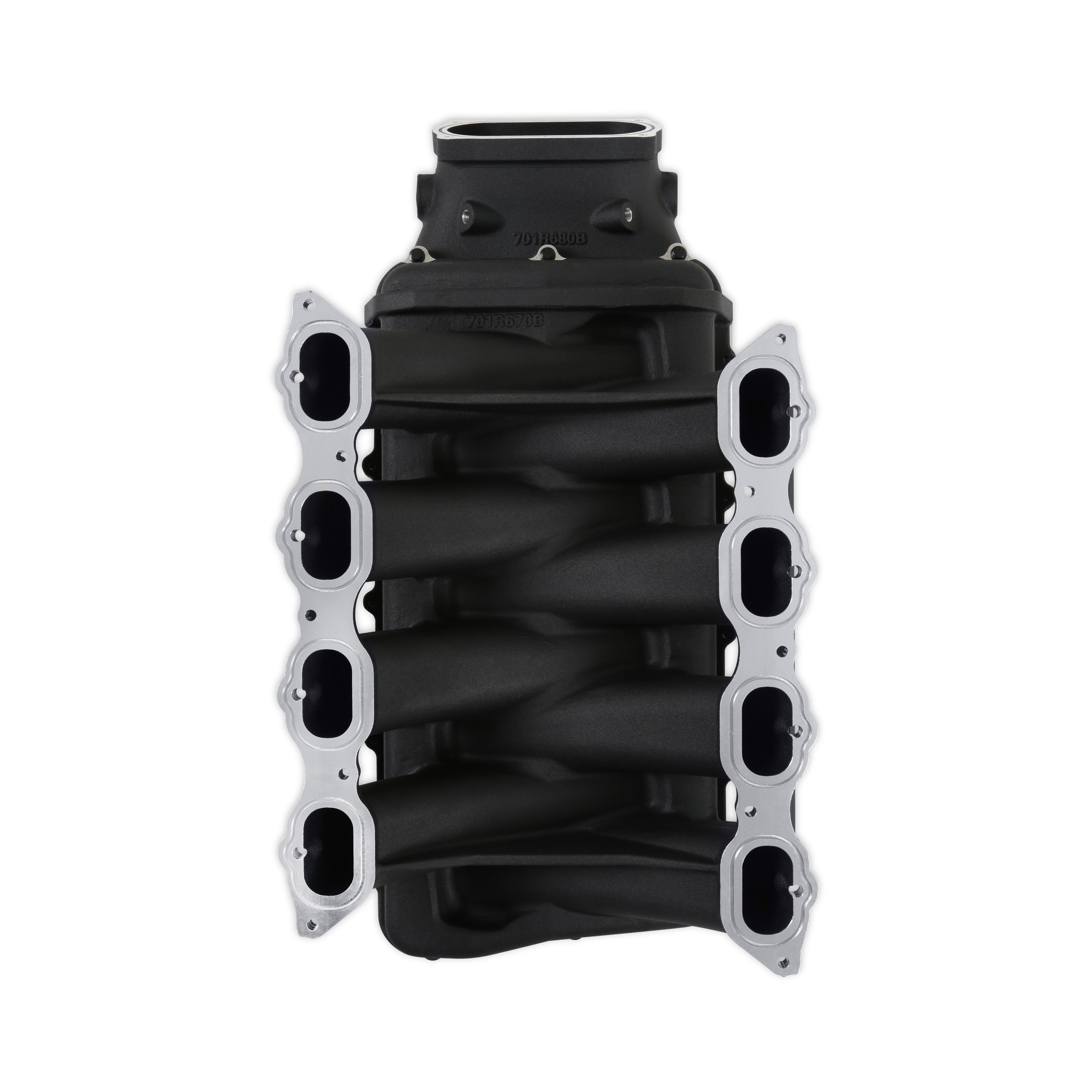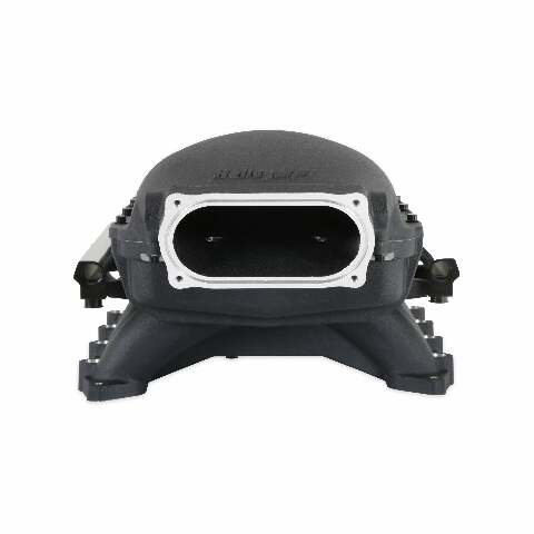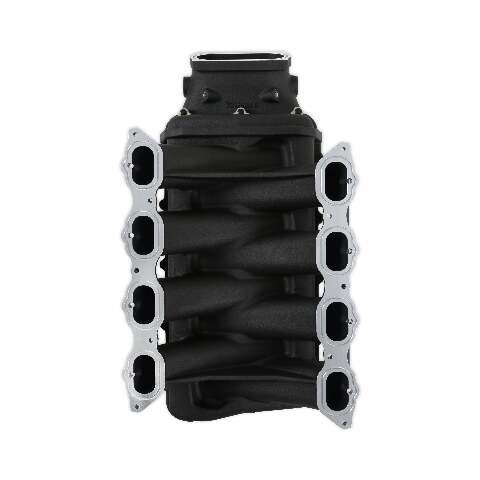 HI-RAM FORD COYOTE BLACK;2007-2014 GT500 Throttle;Finally, an affordable Coyote intake manifold that also performs! The Hi-Ram and Ultra Lo-Ram are designed to fit stock bolt pattern OE heads found on the 2011-2023 Ford 5.0 Coyotes and related engine families, such as, Voodoo and Predators. These kits include fuel rails for use with OEM type fuel injectors and clips, mounting hardware, and O-ring gaskets. Offered in black and natural as-cast finish, both manifolds have a 9.20-inch runner length and are designed to improve the mid to high RPM powerband. The Ultra Lo-Ram provides an additional 19.4mm front and 42.6mm rear clearance compared to the Ford Performance Cobra Jet manifold, plus clears 2015-2023 Mustang factory hoods. Offered in both round and oval throttle body configurations, with replacement front inlets for easy interchangeability. The oval inlet can accommodate up to a 150x66mm single throttle body and 93mm on the round variant. Round inlets include standard mounting provisions for GT350, GT500, and LS 4-bolt throttle bodies. 2011-2023 GT throttle bodies can be used with the optional 717-18 adaptor. The aggressively designed Hi-Ram is constructed in a two-piece design to accommodate for air to water intercoolers and feature up to 20% more plenum volume versus Ultra Lo Rams. This manifold design is only offered in an oval throttle body configuration.;As-cast aluminum construction: more durable for boosted applications, can be welded for modifications;Modular design: accessible runner entries for porting, allows accessories like intercoolers and nitrous plates;300-911 and 300-912 Ultra Lo-Ram will fit under stock hood with stock engine mounts in 2015-23 Mustang;Refined port design with streamlined injector boss for reduced turbulence without loss of flow area;Allows a variety of throttle valves including large monoblade, 2015-20 GT350, 2007-14 GT500, 2019-23 GT500, GM LS 4 bolt, 2011-23 Ford Mustang GT (with optional adapter 717-18);Fuel rails with -8AN ports and dual 1/8 NPT accessory ports for gauges or Gen 3 direct injection fuel line hookup;300-911 and 300-912 front inlets can be interchanged between round and oval with service parts;Plenum Volumes: 300-910 9.8-liters, 300-911 8.4-liters, 300-912 8.2-liters;Two 1/8 NPT ports on all manifolds. Two 3/8 NPT ports on all manifolds, except 300-911 has one