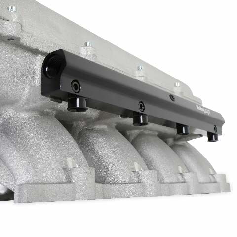 Ultra Lo-Ram FORD COYOTE;ULTRA LO-RAM FORD COYOTE;2007-2014 GT500 Throttle;Finally, an affordable Coyote intake manifold that also performs! The Hi-Ram and Ultra Lo-Ram are designed to fit stock bolt pattern OE heads found on the 2011-2023 Ford 5.0 Coyotes and related engine families, such as, Voodoo and Predators. These kits include fuel rails for use with OEM type fuel injectors and clips, mounting hardware, and O-ring gaskets. Offered in black and natural as-cast finish, both manifolds have a 9.20-inch runner length and are designed to improve the mid to high RPM powerband. The Ultra Lo-Ram provides an additional 19.4mm front and 42.6mm rear clearance compared to the Ford Performance Cobra Jet manifold, plus clears 2015-2023 Mustang factory hoods. Offered in both round and oval throttle body configurations, with replacement front inlets for easy interchangeability. The oval inlet can accommodate up to a 150x66mm single throttle body and 93mm on the round variant. Round inlets include standard mounting provisions for GT350, GT500, and LS 4-bolt throttle bodies. 2011-2023 GT throttle bodies can be used with the optional 717-18 adaptor. The aggressively designed Hi-Ram is constructed in a two-piece design to accommodate for air to water intercoolers and feature up to 20% more plenum volume versus Ultra Lo Rams. This manifold design is only offered in an oval throttle body configuration.;As-cast aluminum construction: more durable for boosted applications, can be welded for modifications;Modular design: accessible runner entries for porting, allows accessories like intercoolers and nitrous plates;300-911 and 300-912 Ultra Lo-Ram will fit under stock hood with stock engine mounts in 2015-23 Mustang;Refined port design with streamlined injector boss for reduced turbulence without loss of flow area;Allows a variety of throttle valves including large monoblade, 2015-20 GT350, 2007-14 GT500, 2019-23 GT500, GM LS 4 bolt, 2011-23 Ford Mustang GT (with optional adapter PN 717-18);Fuel rails with -8AN ports and dual 1/8 NPT accessory ports for gauges or Gen 3 direct injection fuel line hookup;300-911 and 300-912 front inlets can be interchanged between round and oval with service parts;Plenum Volumes: 300-910 9.8-liters, 300-911 8.4-liters, 300-912 8.2-liters;Two 1/8 NPT ports on all manifolds. Two 3/8 NPT ports on all manifolds, except 300-911 has one