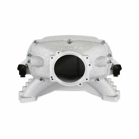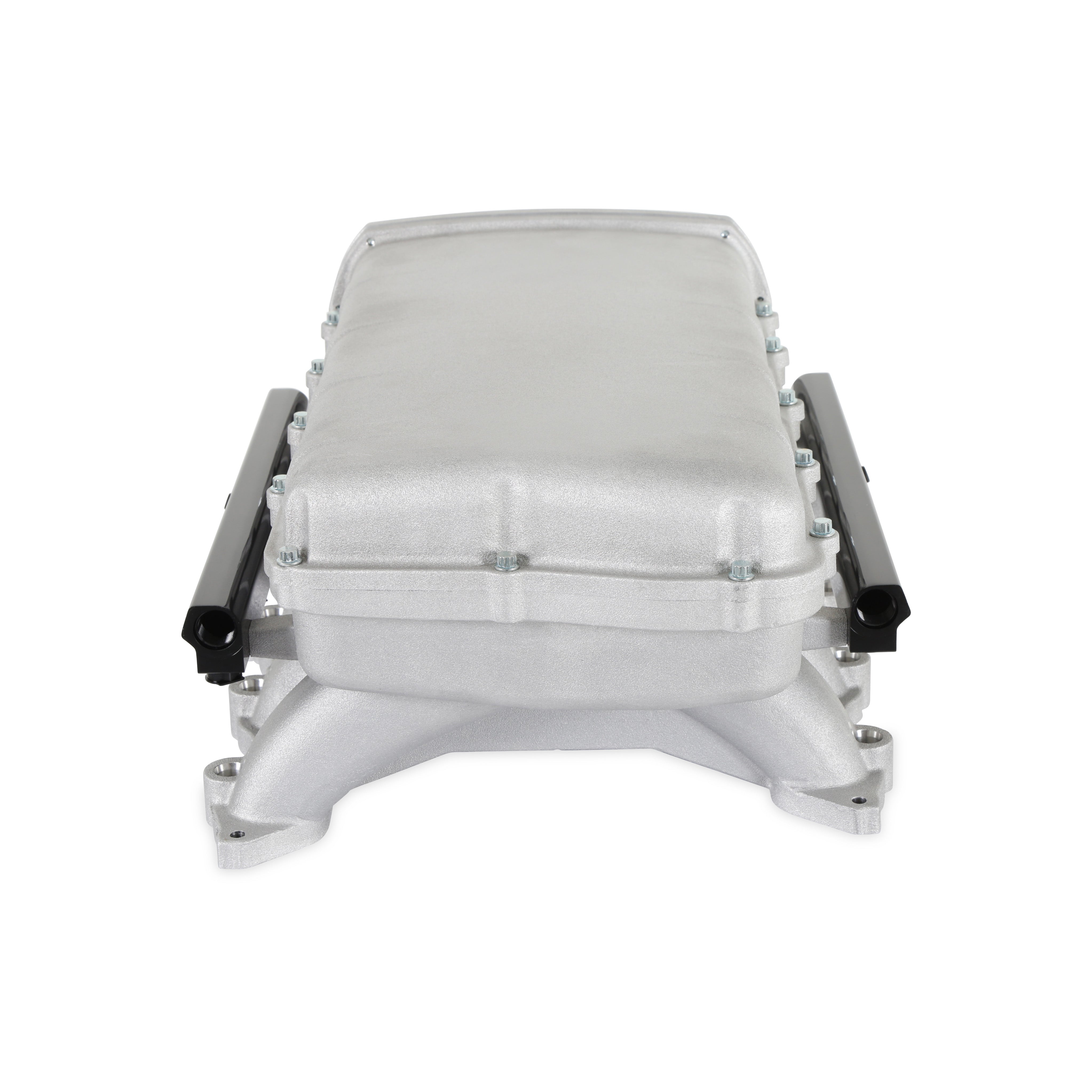 Ultra Lo-Ram FORD COYOTE;ULTRA LO-RAM FORD COYOTE;2015-2020 GT350 or 2019-2022 GT500;Finally, an affordable Coyote intake manifold that also performs! The Hi-Ram and Ultra Lo-Ram are designed to fit stock bolt pattern OE heads found on the 2011-2023 Ford 5.0 Coyotes and related engine families, such as, Voodoo and Predators. These kits include fuel rails for use with OEM type fuel injectors and clips, mounting hardware, and O-ring gaskets. Offered in black and natural as-cast finish, both manifolds have a 9.20-inch runner length and are designed to improve the mid to high RPM powerband. The Ultra Lo-Ram provides an additional 19.4mm front and 42.6mm rear clearance compared to the Ford Performance Cobra Jet manifold, plus clears 2015-2023 Mustang factory hoods. Offered in both round and oval throttle body configurations, with replacement front inlets for easy interchangeability. The oval inlet can accommodate up to a 150x66mm single throttle body and 93mm on the round variant. Round inlets include standard mounting provisions for GT350, GT500, and LS 4-bolt throttle bodies. 2011-2023 GT throttle bodies can be used with the optional 717-18 adaptor. The aggressively designed Hi-Ram is constructed in a two-piece design to accommodate for air to water intercoolers and feature up to 20% more plenum volume versus Ultra Lo Rams. This manifold design is only offered in an oval throttle body configuration.;As-cast aluminum construction: more durable for boosted applications, can be welded for modifications;Modular design: accessible runner entries for porting, allows accessories like intercoolers and nitrous plates;300-911 and 300-912 Ultra Lo-Ram will fit under stock hood with stock engine mounts in 2015-23 Mustang;Refined port design with streamlined injector boss for reduced turbulence without loss of flow area;Allows a variety of throttle valves including large monoblade, 2015-20 GT350, 2007-14 GT500, 2019-23 GT500, GM LS 4 bolt, 2011-23 Ford Mustang GT (with optional adapter 717-18);Fuel rails with -8AN ports and dual 1/8 NPT accessory ports for gauges or Gen 3 direct injection fuel line hookup;300-911 and 300-912 front inlets can be interchanged between round and oval with service parts;Plenum Volumes: 300-910 9.8-liters, 300-911 8.4-liters, 300-912 8.2-liters;Two 1/8 NPT ports on all manifolds. Two 3/8 NPT ports on all manifolds, except 300-911 has one