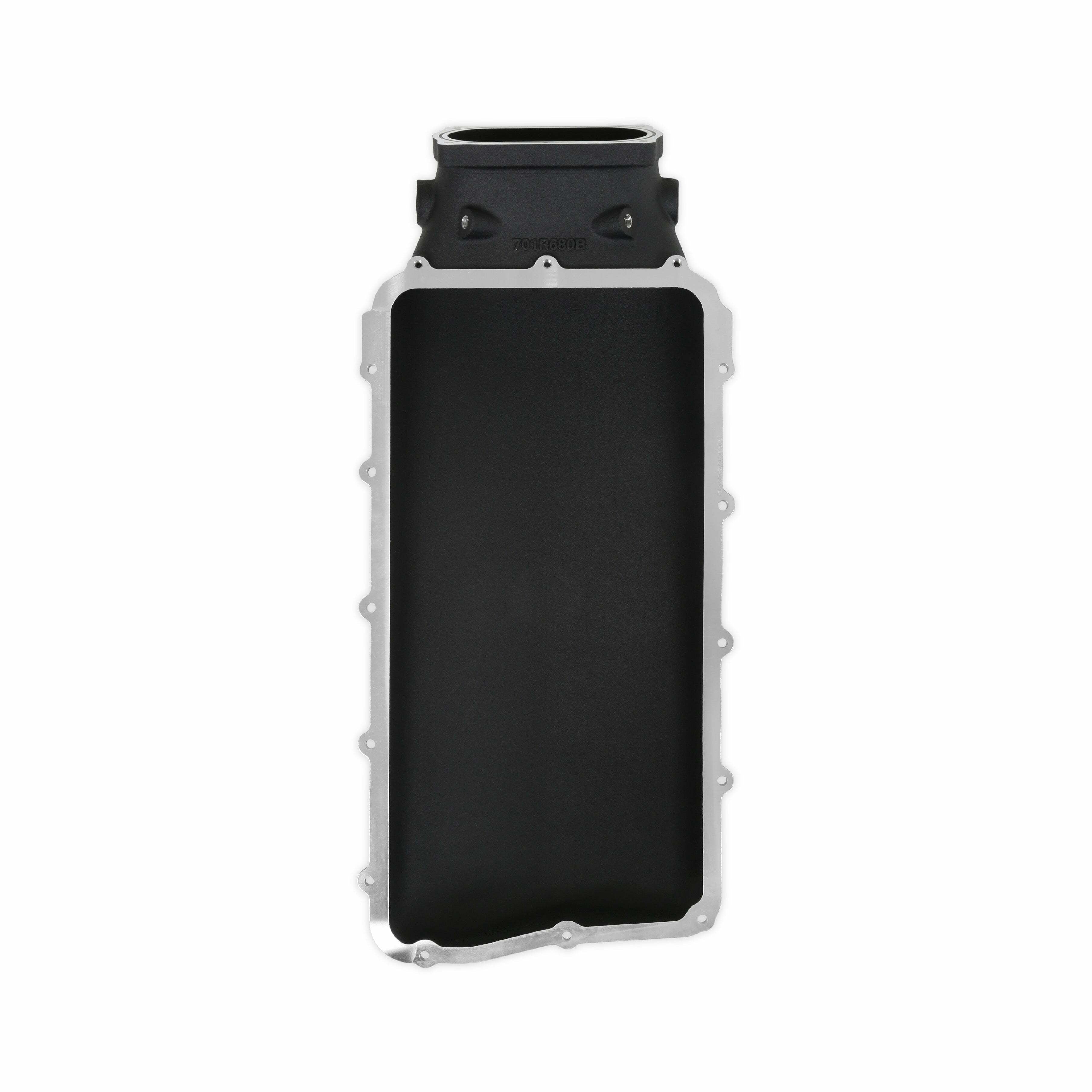 PLENUM LID, FORD COYOTE Hi-Ram BLACK;PLENUM LID, FORD COYOTE Hi-Ram;Finally, an affordable Coyote intake manifold that also performs! The Hi-Ram and Ultra Lo-Ram are designed to fit stock bolt pattern OE heads found on the 2011-2023 Ford 5.0 Coyotes and related engine families, such as, Voodoo and Predators. These kits include fuel rails for use with OEM type fuel injectors and clips, mounting hardware, and O-ring gaskets. Offered in black and natural as-cast finish, both manifolds have a 9.20-inch runner length and are designed to improve the mid to high RPM powerband. The Ultra Lo-Ram provides an additional 19.4mm front and 42.6mm rear clearance compared to the Ford Performance Cobra Jet manifold, plus clears 2015-2023 Mustang factory hoods. Offered in both round and oval throttle body configurations, with replacement front inlets for easy interchangeability. The oval inlet can accommodate up to a 150x66mm single throttle body and 93mm on the round variant. Round inlets include standard mounting provisions for GT350, GT500, and LS 4-bolt throttle bodies. 2011-2023 GT throttle bodies can be used with the optional 717-18 adaptor. The aggressively designed Hi-Ram is constructed in a two-piece design to accommodate for air to water intercoolers and feature up to 20% more plenum volume versus Ultra Lo Rams. This manifold design is only offered in an oval throttle body configuration.;As-cast aluminum construction: more durable for boosted applications, can be welded for modifications;Modular design: accessible runner entries for porting, allows accessories like intercoolers and nitrous plates;300-911 and 300-912 Ultra Lo-Ram will fit under stock hood with stock engine mounts in 2015-23 Mustang;Refined port design with streamlined injector boss for reduced turbulence without loss of flow area;Allows a variety of throttle valves including large monoblade, 2015-20 GT350, 2007-14 GT500, 2019-23 GT500, GM LS 4 bolt, 2011-23 Ford Mustang GT (with optional adapter 717-18);Fuel rails with -8AN ports and dual 1/8 NPT accessory ports for gauges or Gen 3 direct injection fuel line hookup;300-911 and 300-912 front inlets can be interchanged between round and oval with service parts;Plenum Volumes: 300-910 9.8-liters, 300-911 8.4-liters, 300-912 8.2-liters;Two 1/8 NPT ports on all manifolds. Two 3/8 NPT ports on all manifolds, except 300-911 has one