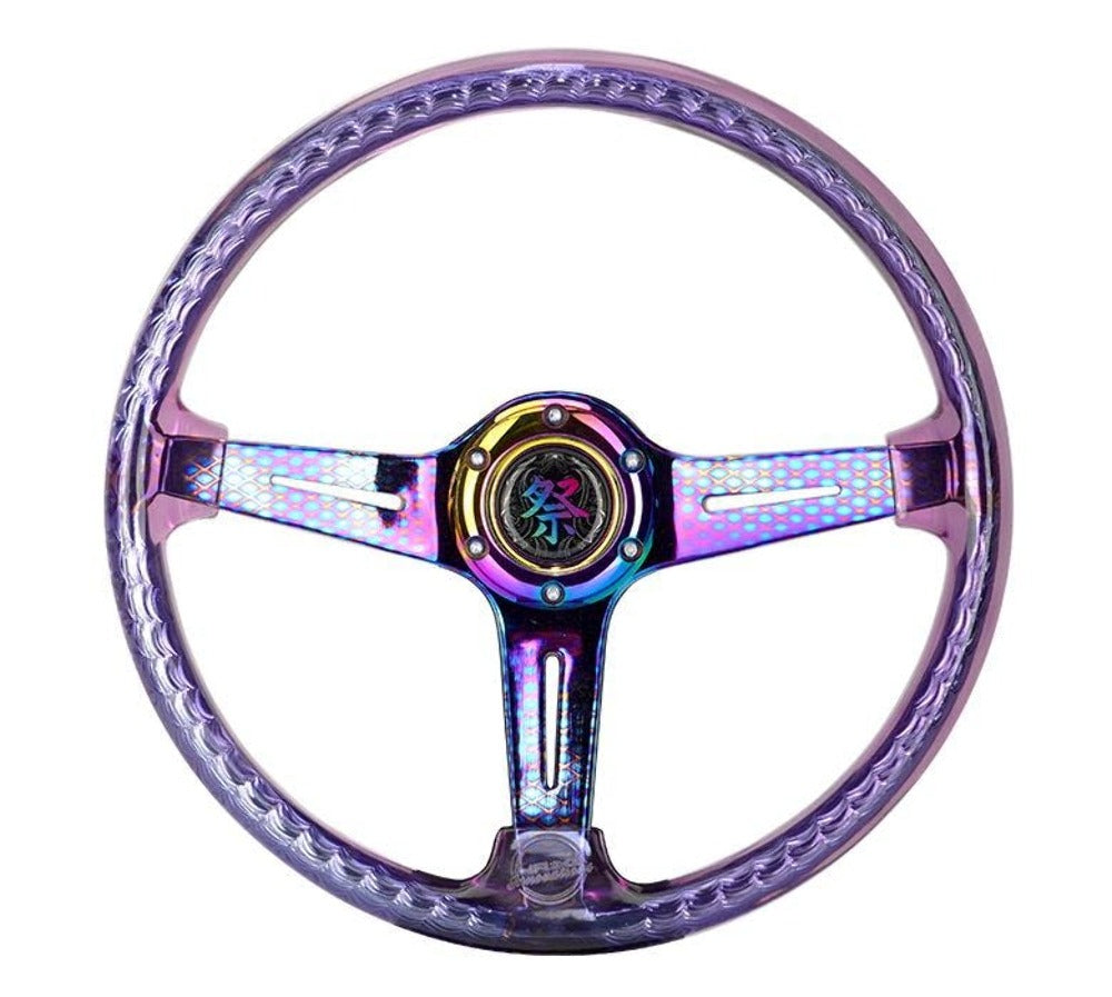 The NRG "Matsuri" Steering Wheel. In 2015, we launched our first Drift Matsuri event at Grange. It was a benchmark for our company to not only represent the support for the sport and also support for the enthusiasts. In 2019, we want to make a steering wheel that has personality and representing the symbol of Matsuri( ç¥), the Japanese word for a festival or a holiday. It is to remind people the start of our contribution for the love of Drifting.