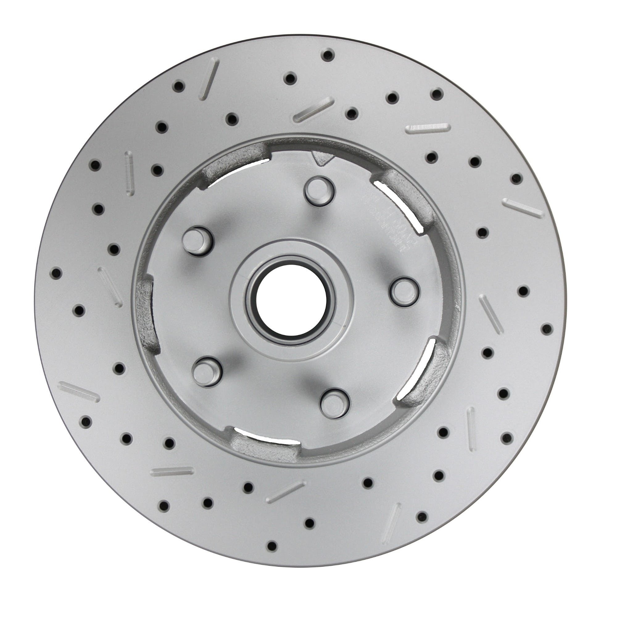 New high quality MaxGrip XDS Cross Drilled & Slotted factory Mustang brake rotor replacement rotor for early Mustang 4 piston cars. This 1964-67 Mustang brake rotor is also a replacement for most aftermarket Ford disc brake conversions. Ready to install on your vehicle with bearing races installed from the factory.