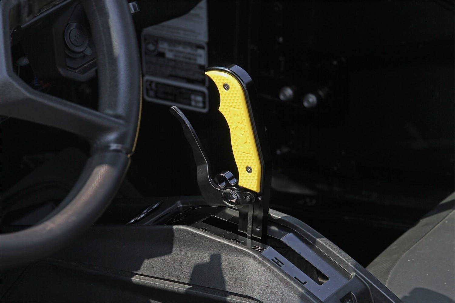 XDR Off-Road(R) is proud to introduce our new Magnum Grip Hill-Killer gated performance shifter for 2018-2020 Can-Am Sport and Trail 800, 1000 side-by-side models. The Magnum Grip shift handle features CNC billet aluminum construction, ergonomic design for a modern aggressive look, replaceable midnight black polycarbonate side grip plates and spring loaded stainless steel trigger for positive locking and unlocking in and out of Park. The Hill-Killer gate plate was designed to be used as a safety device when attempting steep hill climbs. This is done by eliminating the reverse lockout feature of the ratchet gate plate, ensuring quick shifts from forward to reverse gear in an attempt to save the front end from going over backward when climbing steep hills. The gate plate is constructed of heavy 10-gauge 304 stainless steel for durability and long life. Other features include MIL-Spec anodized black finish, stainless steel gate plate, bushing rod, and trigger. Includes all necessary hardware and easy to follow installation instructions. Be sure to check out all the colors and finishes of side grip plates available for the Magnum Grip shifters to customize your Can-Am Sport/Trail interior.