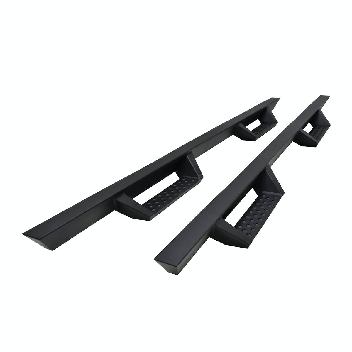 The Iconic XD Fully-Welded Drop Step System features a fully-welded, steel construction with a black powder-coated finish for corrosion protection to keep them looking their best. The aggressive look and design complement today's modern trucks, as well as the Iconic XD Bumpers. They also feature fully-welded steps with dimple die-stamped pads for solid footing. The bolt-on, no-drill installation comes complete with mounting kit and required hardware.
