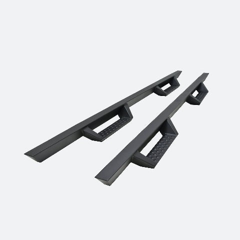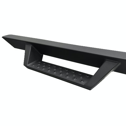 The Iconic XD Fully-Welded Drop Step System features a fully-welded, steel construction with a black powder-coated finish for corrosion protection to keep them looking their best. The aggressive look and design complement today's modern trucks, as well as the Iconic XD Bumpers. They also feature fully-welded steps with dimple die-stamped pads for solid footing. The bolt-on, no-drill installation comes complete with mounting kit and required hardware.