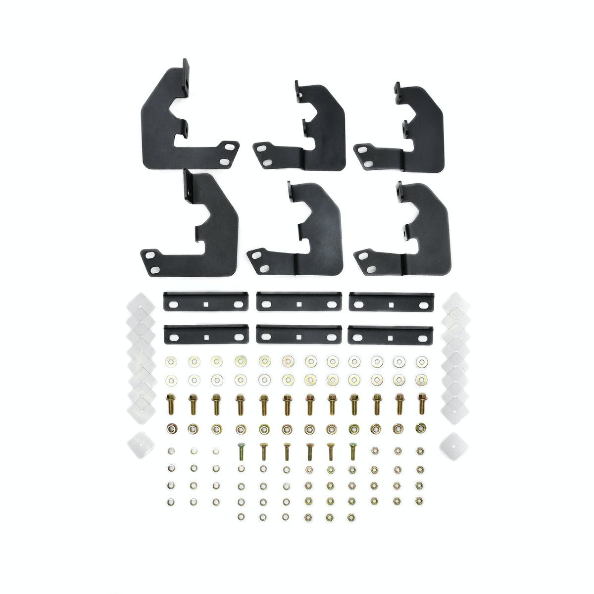 This Drop Step System is made of fully-welded steel with a textured, black powder-coat finish. The 4 wide steps feature dimple die-stamped plates for sure footing. Mounting brackets & hardware are included for a no-drill, bolt-on install.