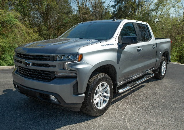 Add easy access to your vehicle and a modern, sleek appearance with the Iconic Accessories Side-Step Nerf Bars. All Iconic Side-Step Nerf Bars feature a high-quality, stainless-steel design that offers strength and durability in any weather. They come in either a polished or a black powder-coated finish, both of which feature an e-coating to add extra corrosion protection. To maintain the integrity of the step, the uv-resistant step pad areas feature a recessed design, which also enables sure footing. The step pads are made from injection-molded polymer to create a no-slip grip for extra safety. The bars are available in either a round or an oval shape, with your choice of 30°, 90°, or 180° (straight) mandrel bends. They are also available in a cab-length model, or a wheel-to-wheel length model for bed access. Installation is a quick and easy process with the no-drill, bolt-on design. Each kit includes two nerf bars with mounting brackets and all required installation hardware.