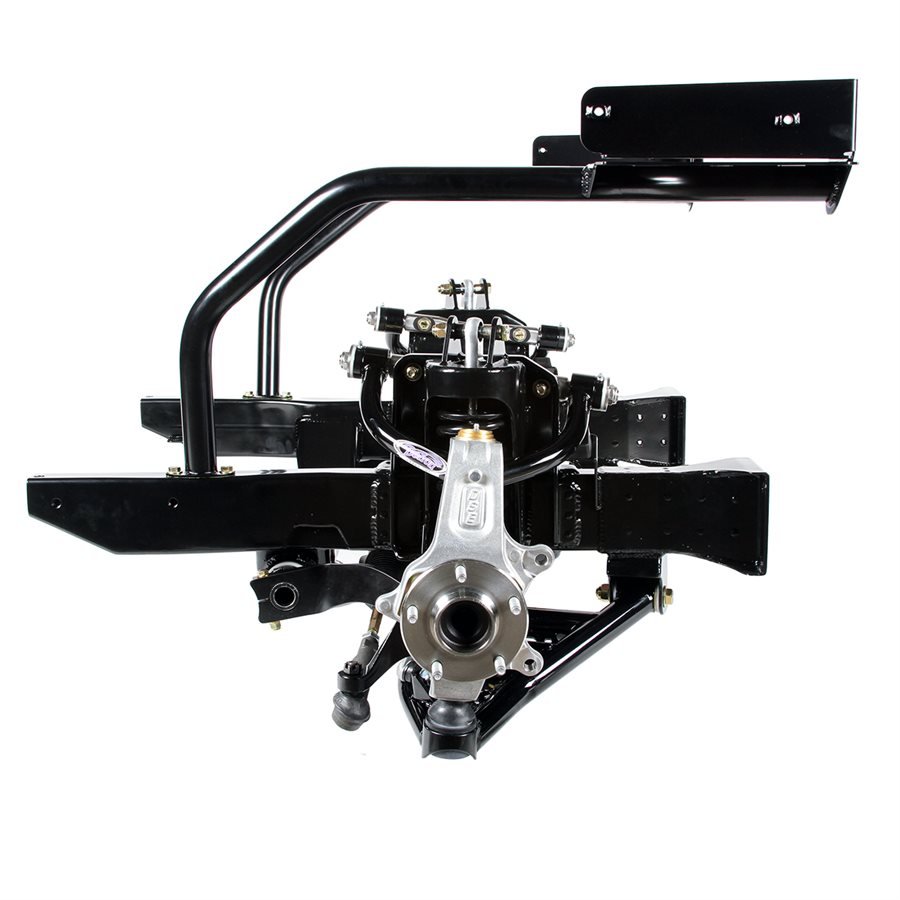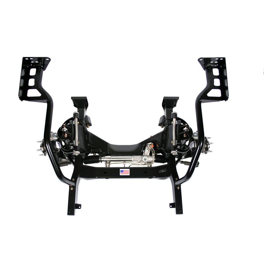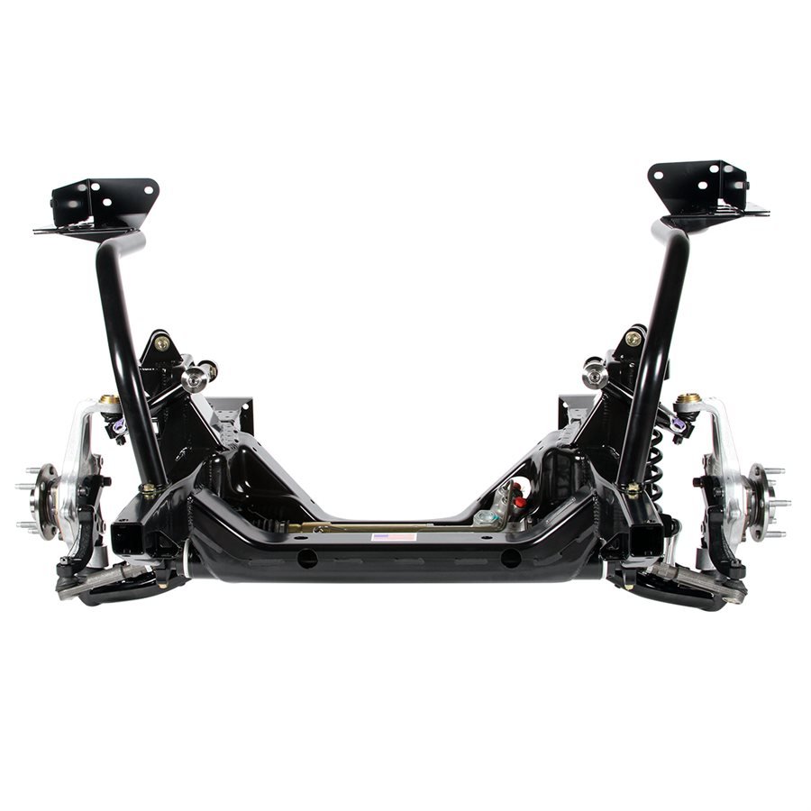 FRT FRAME SA ASSEMBLED PC 66-67 CHEVY II;Frame must ship freight. Must use at least 17" wheels that require a minimum inside wheel diameter of 16.250". For competition applications, the Detroit Speed rack & pinion fluid transfer conversion kit will replace the hardlines on your Detroit Speed rack & pinion using -4 AN steel fittings. The hoses are PTFE lined to handle the high pressure demands of the steering system and come with pre-crimped stainless steel fittings to attach to the -4 AN fittings.;Detroit Speed Powdercoated Front Frame - Single Adjustable Shocks;1966-1967 Chevrolet Chevy II;Detroit Speed's front frame is a bolt-in replacement for the original stock subframe. It improves the handling and ride quality by utilizing Detroit Speed's unique suspension geometry. It is the ONLY Chevy II frame in the aftermarket industry with OEM quality stamped crossmembers for improved structural rigidity. The bay bars feature rigid integral hood hinge mounting and are hidden when used with Detroit Speed's Chevy II Inner Fenders package. Spring Rate: 400 lbs/in Spring Free Length: 10 in Single Adjustable Shock:Includes all features of base shock with 'Detroit Tuned' valving plus installed rebound adjustment with the simple turn of a knob while providing excellent ride quality on the street. SBC and LS engines have been designed as a direct bolt-in to this frame. The Detroit Speed frame has been designed, engineered, and developed for the road and track. This frame blends the benefits of current OEM technology and aftermarket performance into one product! The frame is sold in bare metal, uncoated and unassembled. If the powder coat option is purchased, assembly is included.;TIG welded tubular upper and lower control arms;OEM Quality stamped crossmembers;Aluminum body coilover shocks with "Detroit Tuned" valving;Coilover springs;"Detroit Tuned" power rack and pinion steering;Integrated splined sway bar with composite bushings;Control arm cross shafts with caster tuner bushings;Forged aluminum Detroit Speed spindles