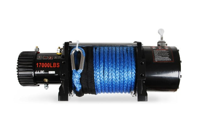 Anvil heavy duty electric winch features a 7.0 HP 12-volt motor & 3-stage planetary gear for 17,000 lbs. of pulling capacity (single line). This winch comes with a synthetic rope and aluminum fairlead. The wireless remote control is really handy when loading a vehicle on a trailer, or where it is tough to reach the wired switch. Includes: winch, aluminum fairlead, solenoid, wired switch, wireless remote, wire & hardware. Ideal for use on 3/4 ton trucks, 1-ton trucks, and equipment trailers.