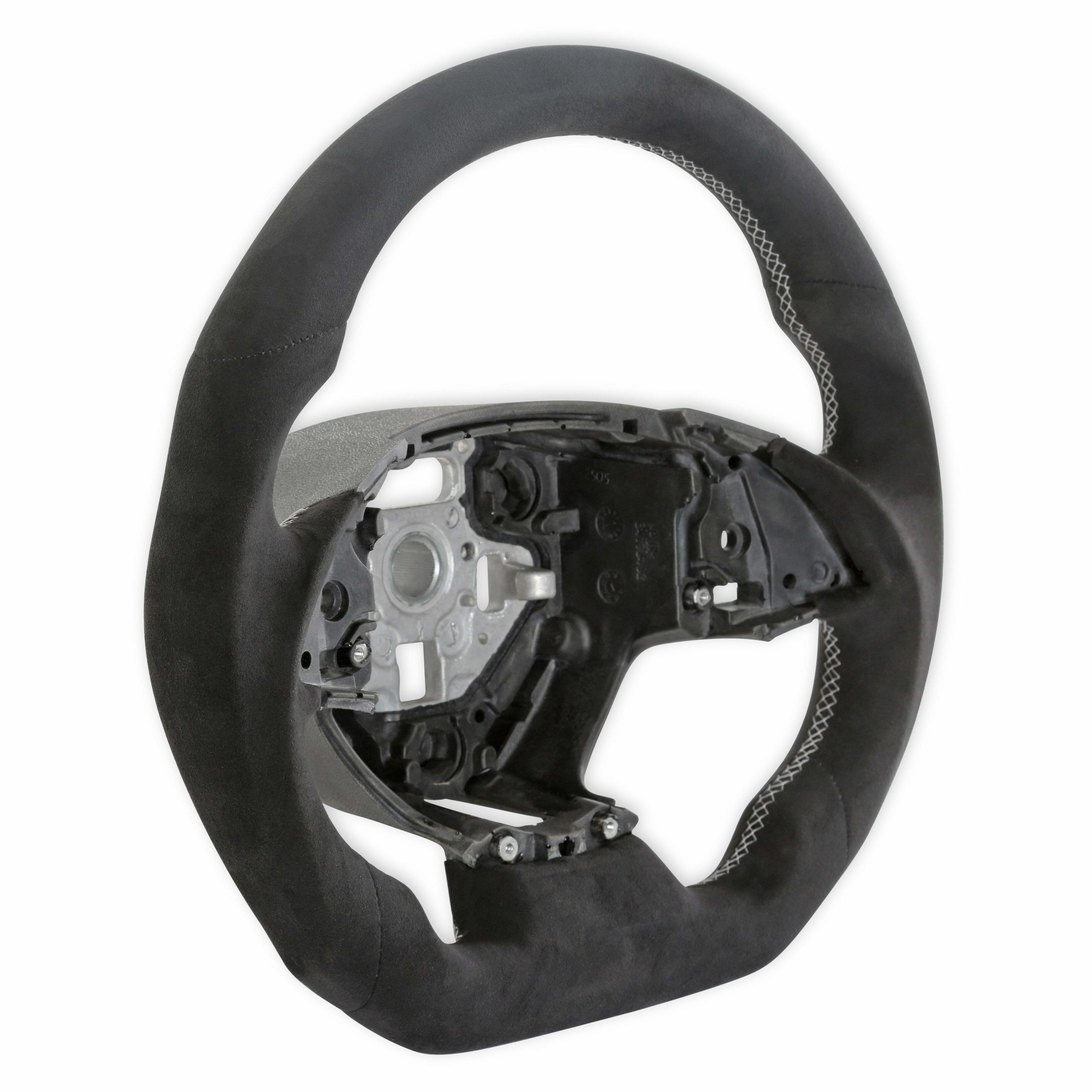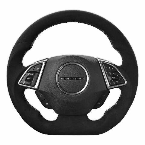 CAMARO STEERING WHEEL- ALCANTARA;Please Note: Photos shown with customer's airbag & controls re-installed on steering wheel (reuses factory airbag & steering wheel-mounted controls).;steering wheel;alcantara;chevy; chevrolet; camaro; drake muscle cars steering wheel;;Drake Muscle Cars Steering Wheel - Alcantara Wrapped;2016 - 2022 Camaro;The Drake Muscle Cars steering wheel is beautiful, functional, and easy to install. Choose from carbon fiber with leather grips or Alcantara-wrapped steering wheels. The motorsport-inspired design features deep-pocketed palm and thumb grooves on the sides to give you a confidence-inspiring and comfortable grip for your hands. The cross-stitched silver threading gives the leather section an extra elegant touch that is only found on high-end performance steering wheels. The flat bottom gives you extra room for your legs, and the centerline stripe option makes it easy to find the center in street and performance driving applications. Simply put, we've made personalizing your steering wheel easy. This is our own design. We don't modify or wrap your existing wheel. We ship you a new wheel and you swap over your factory controls and airbag. There's no downtime without your car to ship out and modify your existing wheel, and there are no core fees. Simply swap, install, and enjoy! *Be sure to order the proper wheel to match your vehicle based on if the steering wheel is heated or non-heated.;Direct Replacement in 2016 - 2022 Camaro with No Core or Downtime Required;Choose From Genuine Carbon Fiber with Leather Grips or Alcantara Wrapped Design;Flat Bottom Design with Ergonomically Shaped Finger, Palm, & Thumb Grooves for Driver Comfort;Carbon Fiber- Sporty Motorsport Appearance and a Great Improved Look;Centerline Stripe (carbon only) - Makes it Easy to Find Center When Driving;Silver Colored Stitching for a Premium Appearance;Easy to Install - Factory Controls & Airbag are Reused w/ the New Steering Wheel;Steering Wheel is Non-Heated and Fits 2016 - 2022 Models with the Standard Non-Heated Steering Wheel