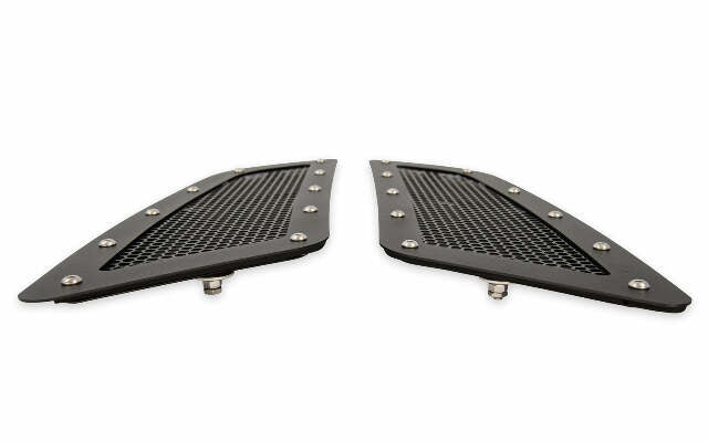Give any 2015+ Mustang GT S550 an attitude adjustment with a set of Speed Mesh Hood Vents by Drake Muscle Cars. These aggressively styled hood vents feature matte black laser-cut frames, black honeycomb pattern mesh grilles and stainless steel hardware for a hardcore look. Each kit includes integrated backing plates that can be removed for increased air flow. These hood vents install in the factory location with no drilling or cutting required.