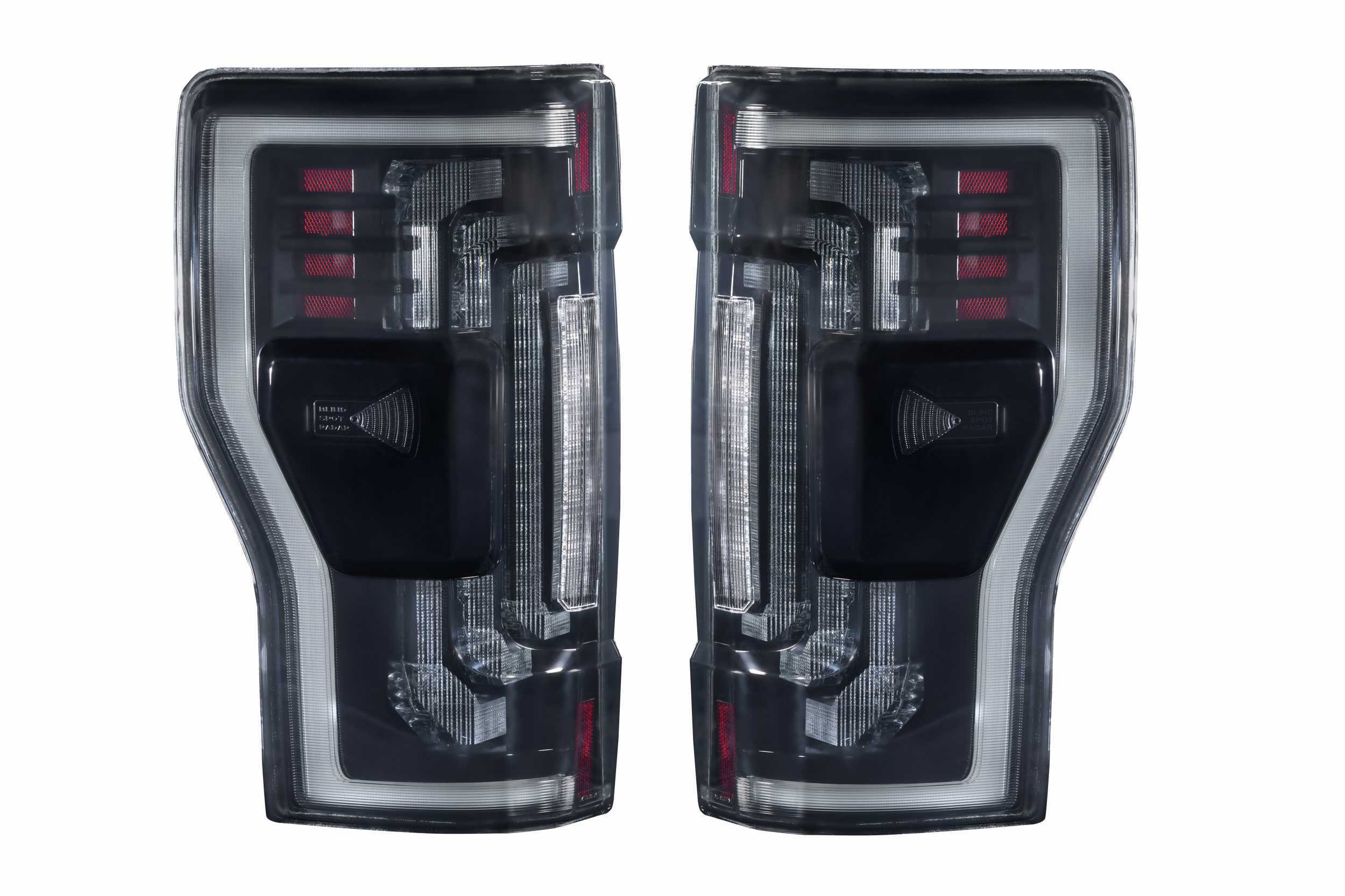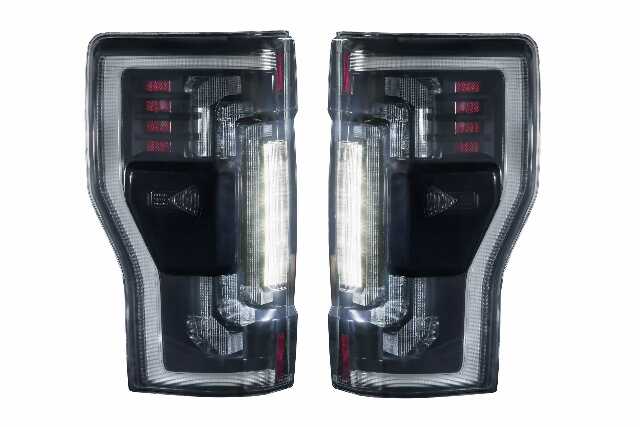 Ford Super Duty: Given the popularity of the XB headlights for the Super Duty from Morimoto, its evident that Super Duty owners aren’t the crowd who cuts corners when it comes to upgrades for their truck... and while there's no shortage of aftermarket parts out there, somehow no brand has yet to deliver a worthy set of tail lights for this truck ...until now. The Morimoto XB LED tail lights for the 2017-2022 Ford Super Duties are the category killer you have all been waiting for! Ultimate Flex: Compatible with all versions of the Ford Super Duty from 2017 to 2022, they will fit all trucks with OE incandescent, OE incandescent with BLIS, or the OE LED with BLIS tail lights... Yes you read that correctly. Even if your truck does not have the BLIS system, the XB tails will still fit, work properly, and add that high-end vibe to your truck. They will not however magically enable the BLIS function. Everything has been thoughtfully designed to be completely plug n play with the factory wiring harness and radar system, use all of the stock mounting points, and should not take more than 30 minutes to install both taillights. Reverse Lights: Are often over-looked, but not with the Morimoto XB tail lights for the Super Duty. While they come standard with powerful LED reverse lights, just wait, theres more! Morimoto's backup light boost setup allows you to plug n play with the optional XB Backup Light Boost Bar that mounts to the top of your license plate frame and provides an extra 5000 lumens of controlled light output in reverse. Yeah, Morimoto customers like to see where they’re going in reverse too! Style: Inspired by the design of modern OEM LED tail lights from Ford, these look at-home in the rear end of the Super Duty. Three rows of 3D light blades are illuminated from the rear with integrated TIR optics, and serve as the brake light and turn signal. The parking light optic around the outer edge of the lights mirrors the OEM LED setup, and is equally impressive in the intensity department day or night. Pair that with the surrounding muscular trim, optional smoked or red outer lens, and we've easily got what is the best-looking set of Super Duty tails on the road. Style and Safety: All Morimoto tail lights are designed to comply with all DOT, SAE regulations for rear-facing lamps. We pride ourselves on offering stylish, high-performance and safe products for serious enthusiasts, which is why all new Morimoto products are verified by trusted third party labs for compliance and are backed with an industry-leading five year warranty.
