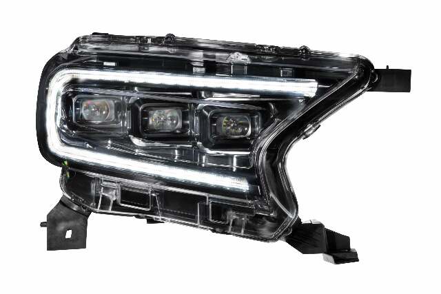 Much Needed: Whether you are working on building a Ford Ranger up to be a road warrior or trail blazer, there's one thing that the original headlights lack... and that is: Everything. So what does your truck need? Triple Bi-LED headlights with a crazy bright daytime running light, a sequential turn signal, blacked out internals, and a fantastic beam pattern. The Morimoto XB LED headlights for the 2019+ Ford Ranger will do the trick! Six Low Beams and Six High Beams: First things first. These are the first and only set of headlights in the entire Morimoto XB lineup that use not one, not two, not three, but three Bi-LED projectors. Yes that is three low beams, and three high beams to provide you with maximum output. These things are much brighter and wider than the stock halogen or LED headlights, and will also out-perform other options out there in the aftermarket too. Start up Sequence: And if the optical upgrade isn't enough for you, then surely the special start-up sequence on the projectors will reel you in. When the Daytime Running light kicks on, the projectors illuminate in a two-stage sequence before turning back off. While it does absolutely nothing for performance, you can't deny the cool-factor! Daytime Running Light: Their LED daytime running light is powered by Osram 5000K LEDs and is insanely bright, easily visible during the day. The turn signal function uses the same optics paired with amber LED chips to produce a full sequential setup that's equally sexy. For those who are a bit more traditional... Yes... they can also be setup to run as solid on/off style signal too. DOT Approved: Make no mistake, these will produce a much better result than slapping some LED replacement bulbs into your stock headlights. Their triple-projector optics meet & exceed all SAE, DOT, and FMVSS108 regulations when aimed properly... and that's easy to do with their integrated adjusters. US market lights will be equipped with amber side markers as well. Plug and Play: Wiring is easy too! The Morimoto XB Ranger headlights are designed to work on your truck without any modifications. They will plug into the factory connectors for the stock headlights. No error codes, no flickering, hyper-flashing, or radio interference. They can easily be removed and will not void your factory warranty. These headlights will work with trucks that came stock with the basic halogen headlights, and the higher-end version with the projectors and LED DRL.